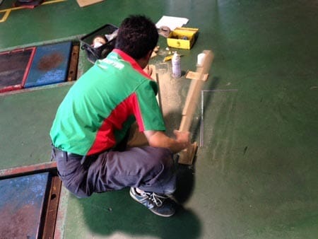 何とピットに中に大工さんが!!ということで、後ろから密かに写真をパシャリ!