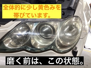 本日は、こちら!! ヘッドライト磨きとコーティングです! 磨く前は、こんな感じで 少し黄色みがかっています。 紫外線や、熱は大敵。 防ぐことが難しいのですが しっかり綺麗になる車両も多く 実は人気のサービスなのが このヘッドライト磨きと、コーティング。 磨いたあとが、コチラ!! しっか...