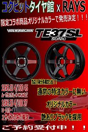 こんにちは なんと・・・( ゚д゚)! なんと・・・Σ(゚Д゚) コクピット・タイヤ館の限定ホイールが 発売します。 気になるホイールメーカーは・・・ RAYS(レイズ)さんです。 ホイールはボルクレーシング TE37SL SONICになります カラーが特注色にラインナップがない オリジナルとして艶ありブラックを採...