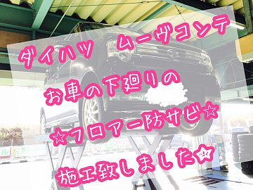 こんにちは 今回のサービス事例は 先日ダイハツ ムーヴコンテで ご来店頂きましたお客様より お車の下廻りの防錆施工の ご注文を頂きましたので その作業工程をご紹介⭐︎ 最近では、凍結しない様に 時期になると塩カル(塩)を毎日のように撒く為、 お車が傷みやすい傾向にあります。 冬を迎えるべく ...