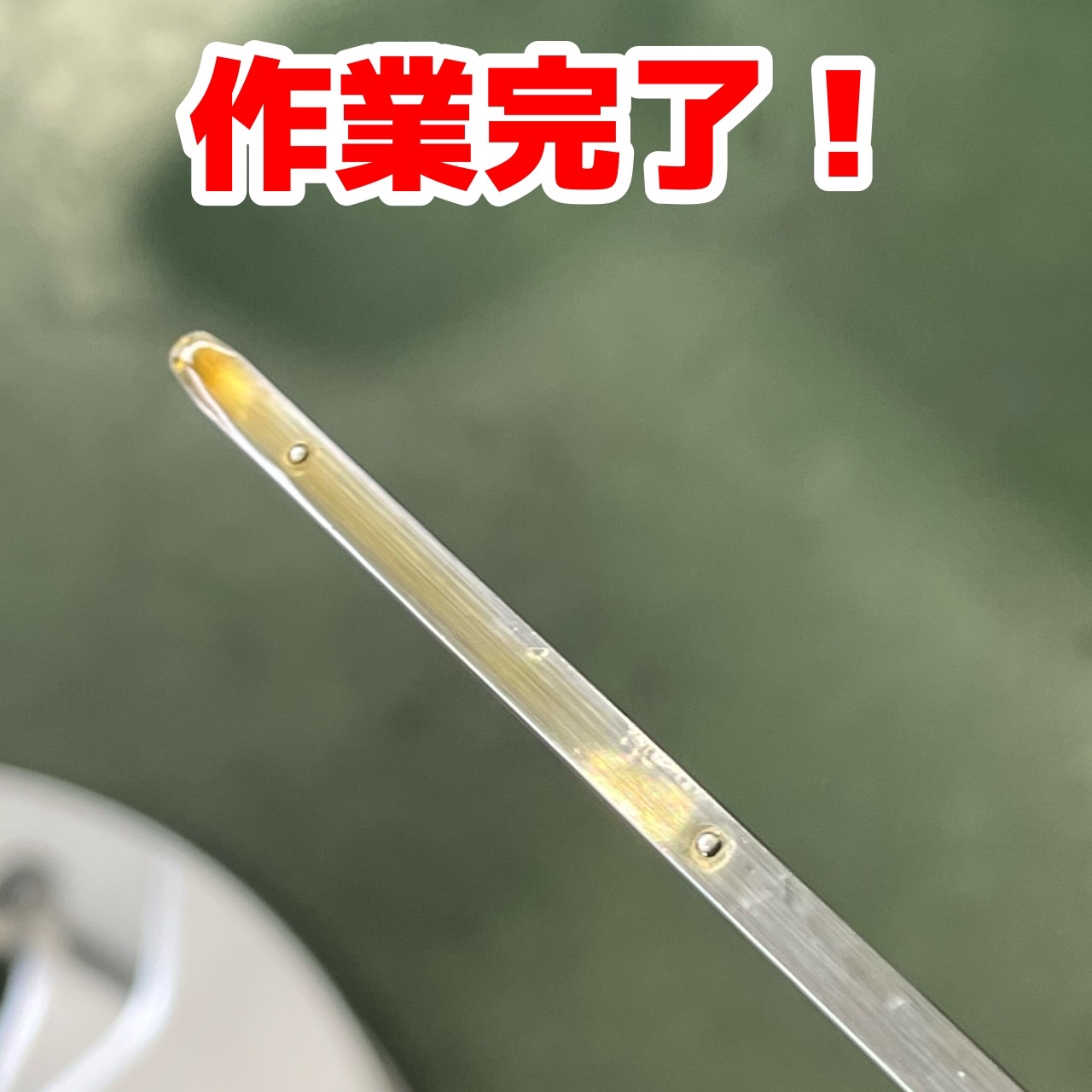 ある程度注入しレベルゲージを確認したあと、エンジンをかけエンジン内にオイルを回し、再度確認します。