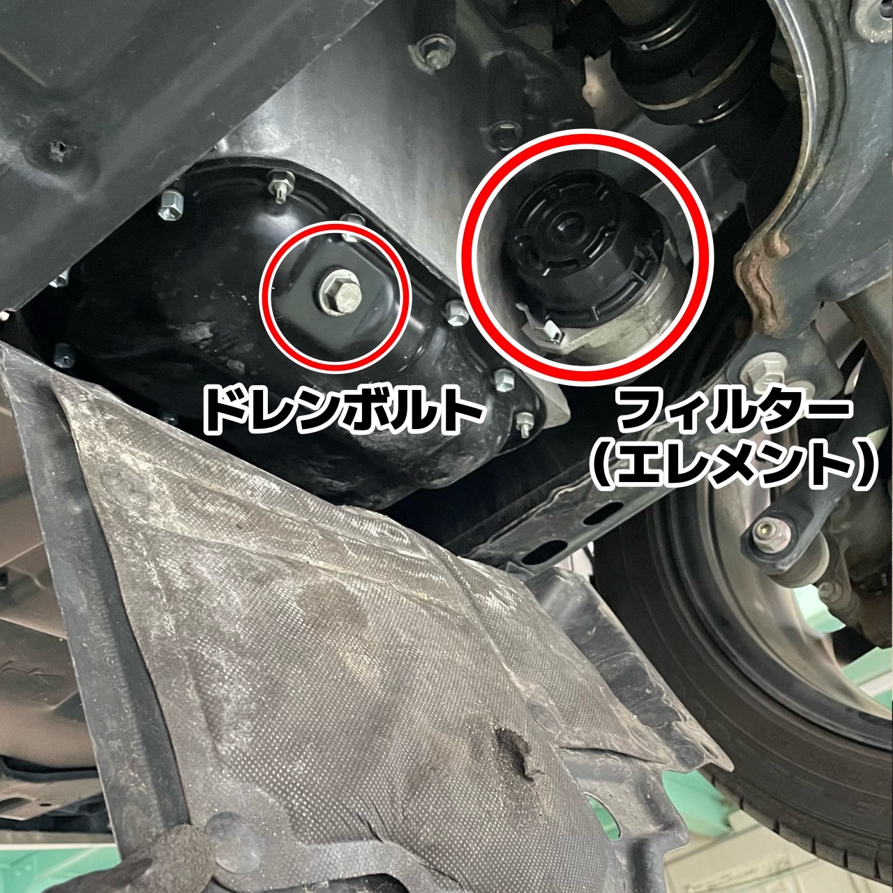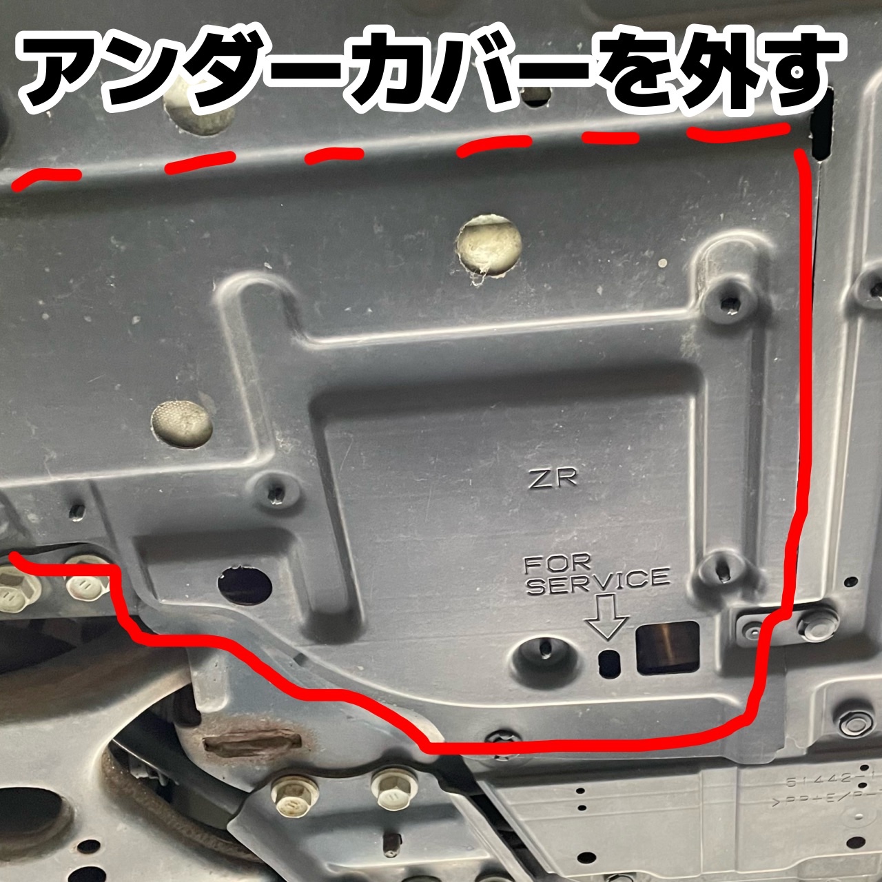 このお車はエンジン下にアンダーカバーが装着されており、オイル交換をするためにそれを外す必要があります!