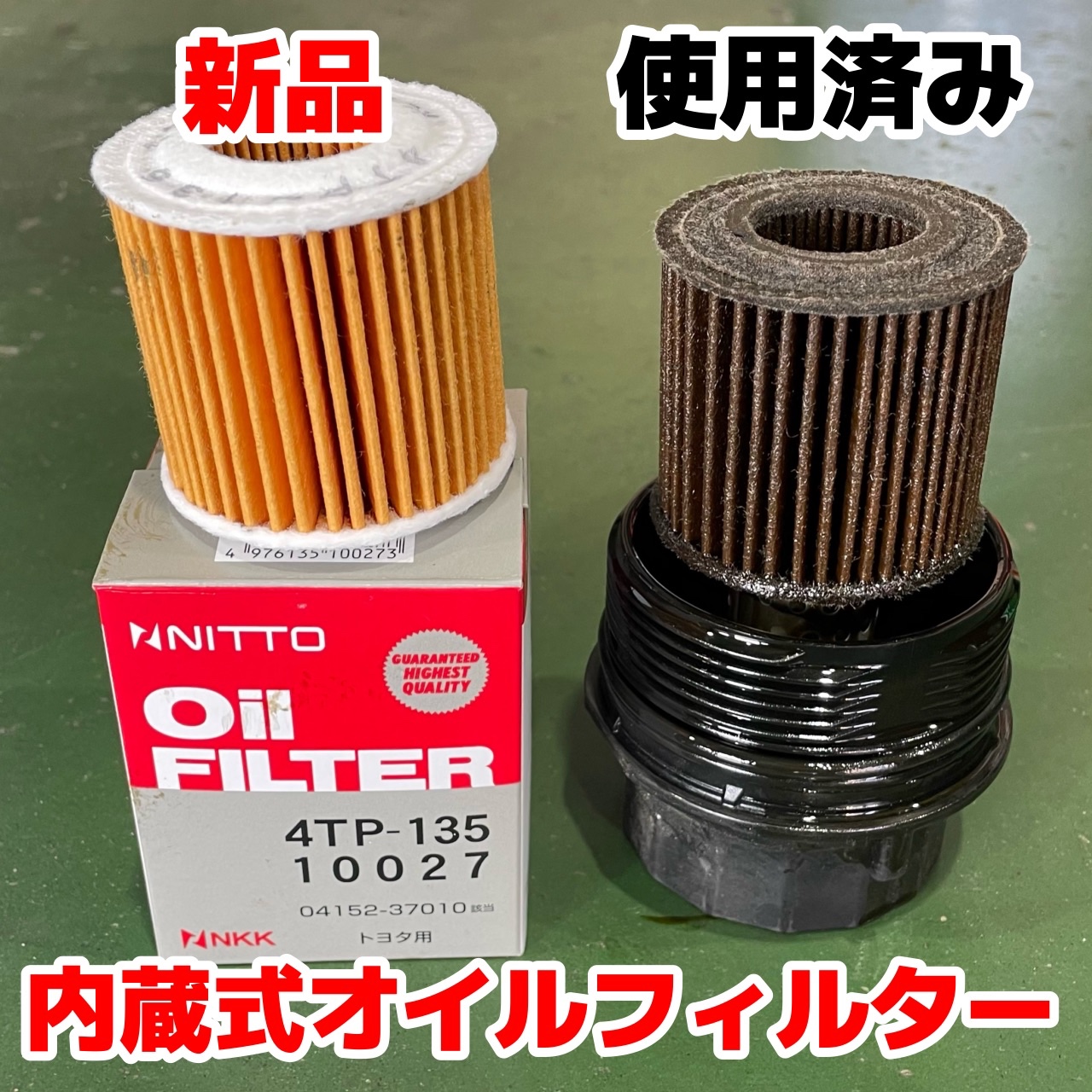 (トヨタ車では最近の車でも仕様によって一体型のカートリッジ式と今回の内蔵式の2種類のオイルフィルターをよく見かけます。)