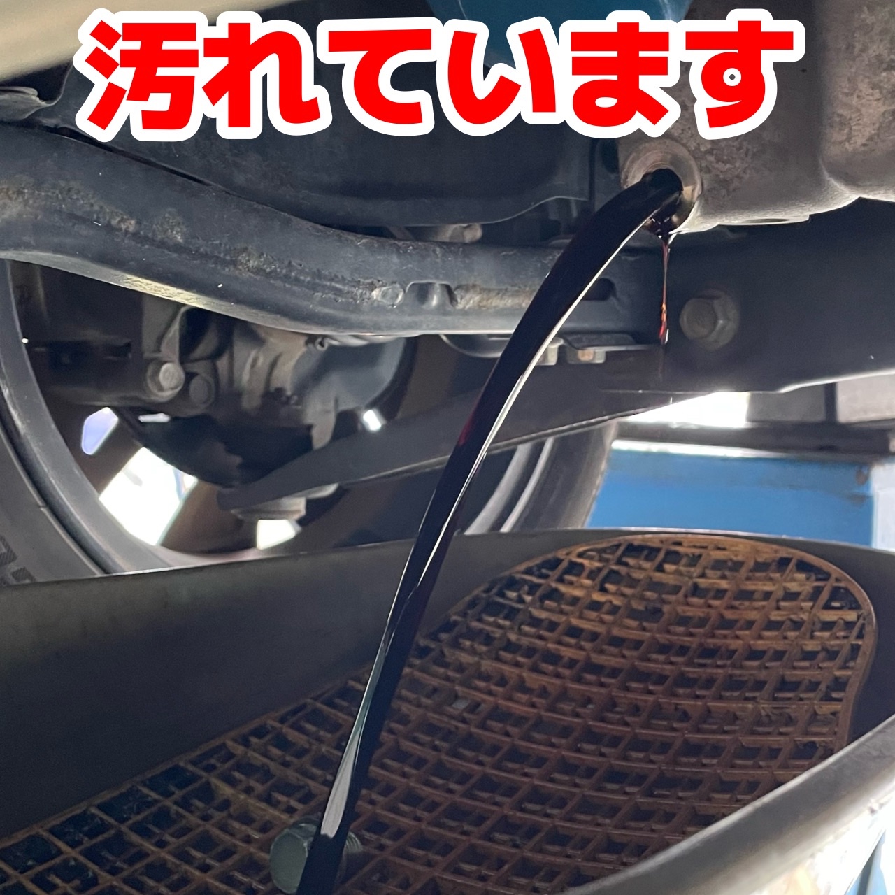 ドレンボルトからオイルを抜いていきます。オイル交換距離を超過していましたので、やはり汚れており、真っ黒ですね!