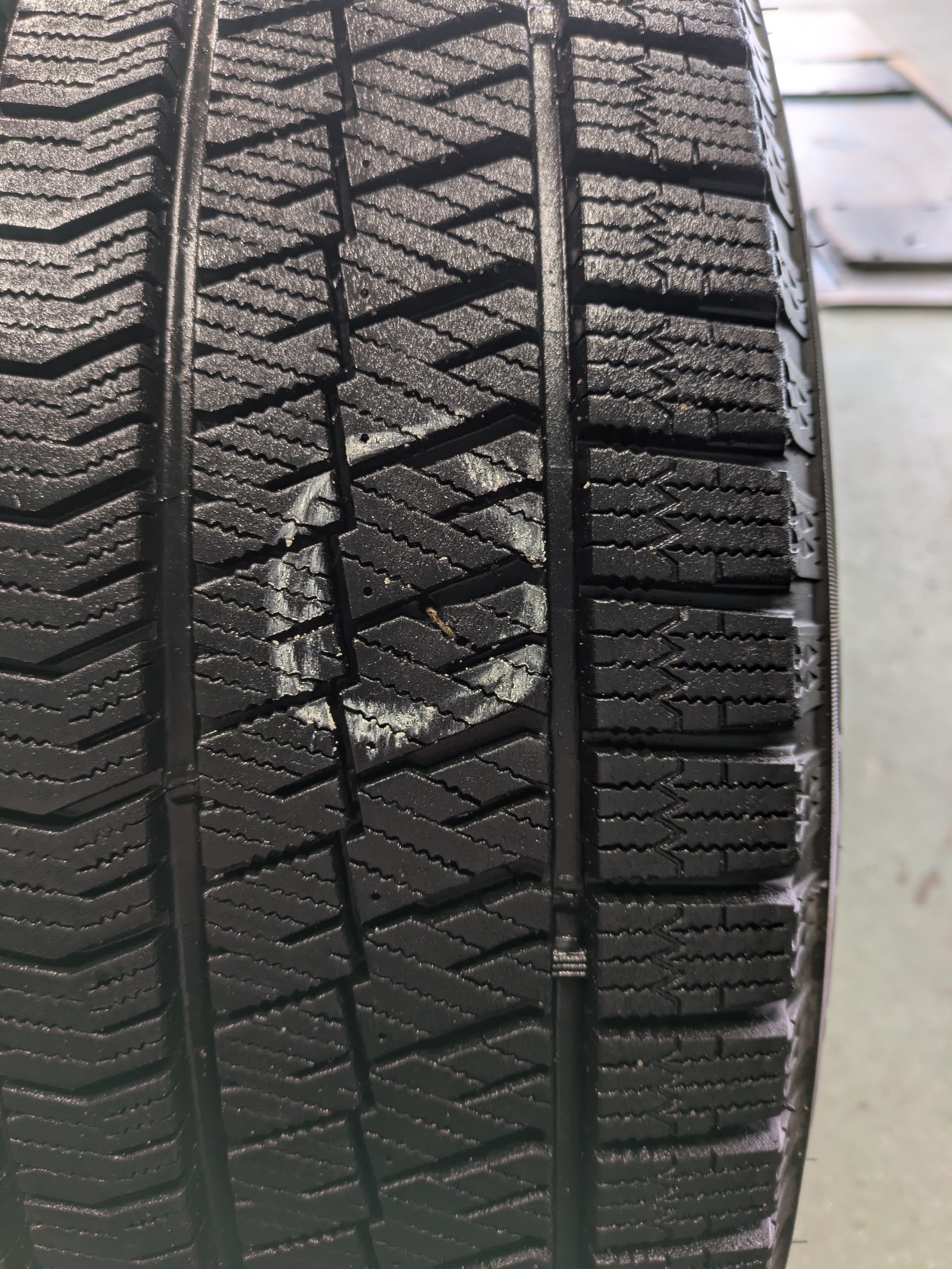 釘がささってパンクしてました、、しかも2箇所も、、修理できなく新品交換、、、(涙、、)。