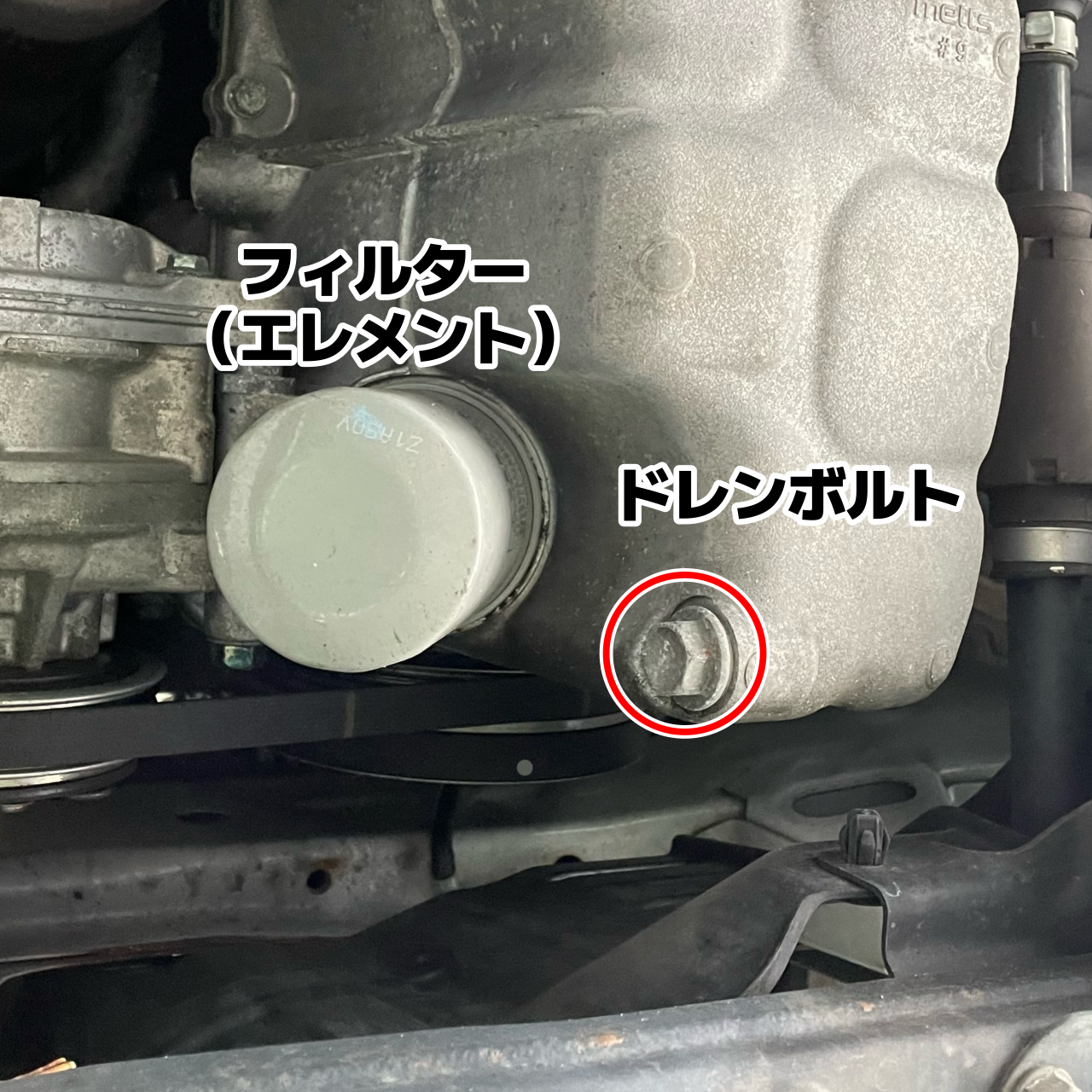 ドレンボルト&オイルフィルターの場所
