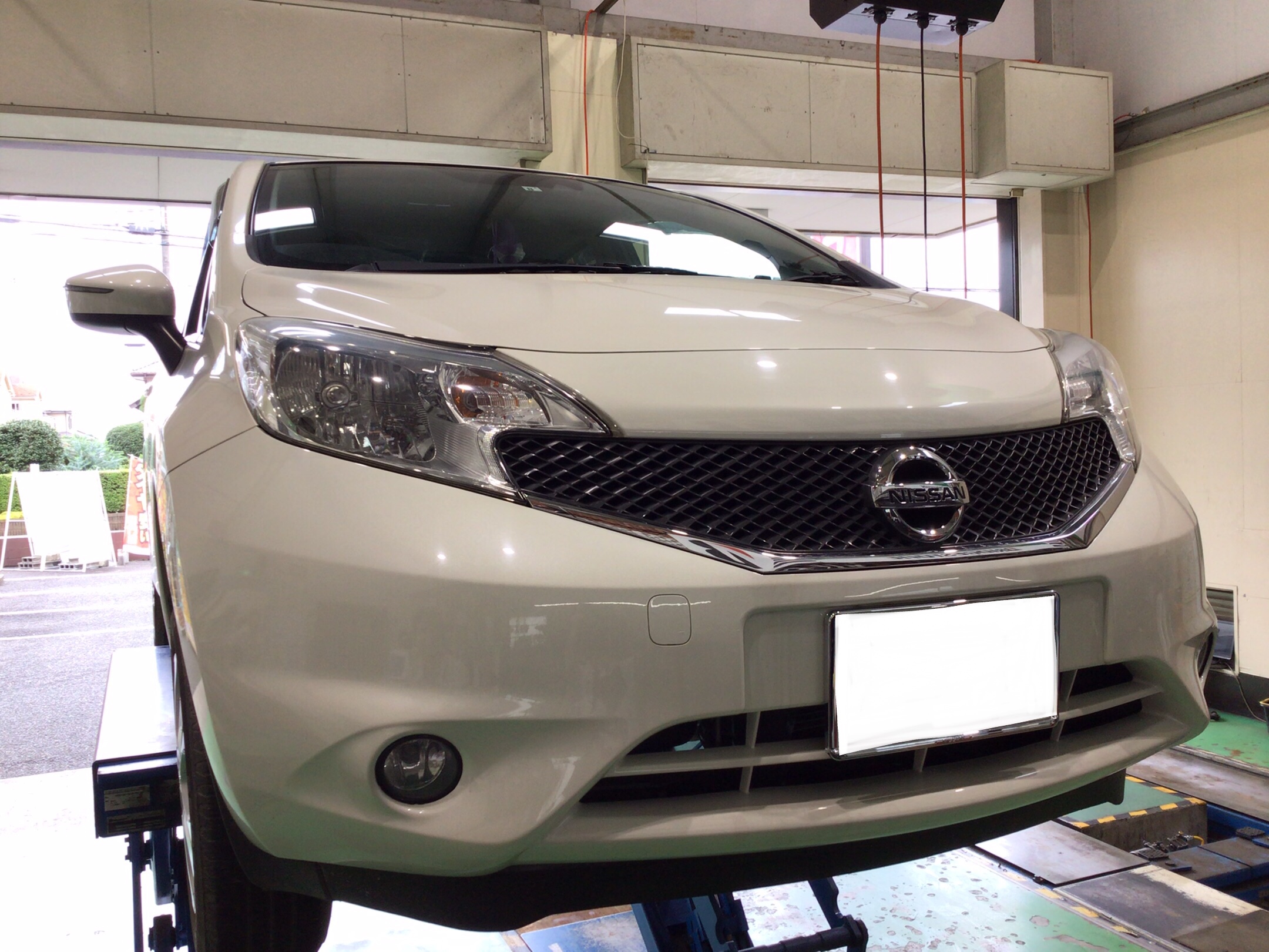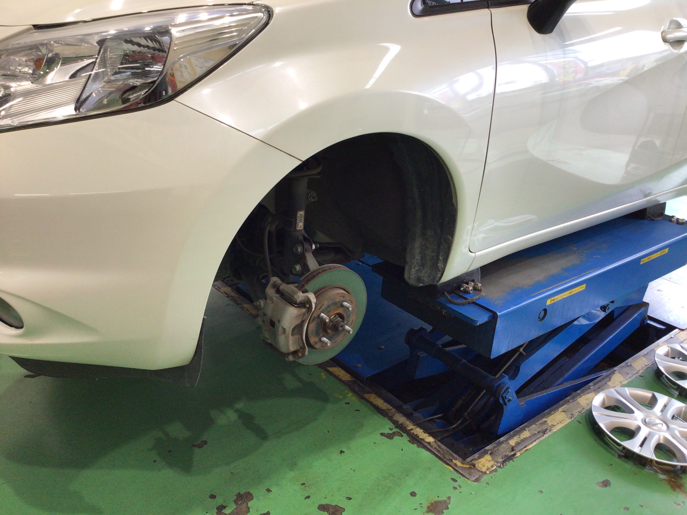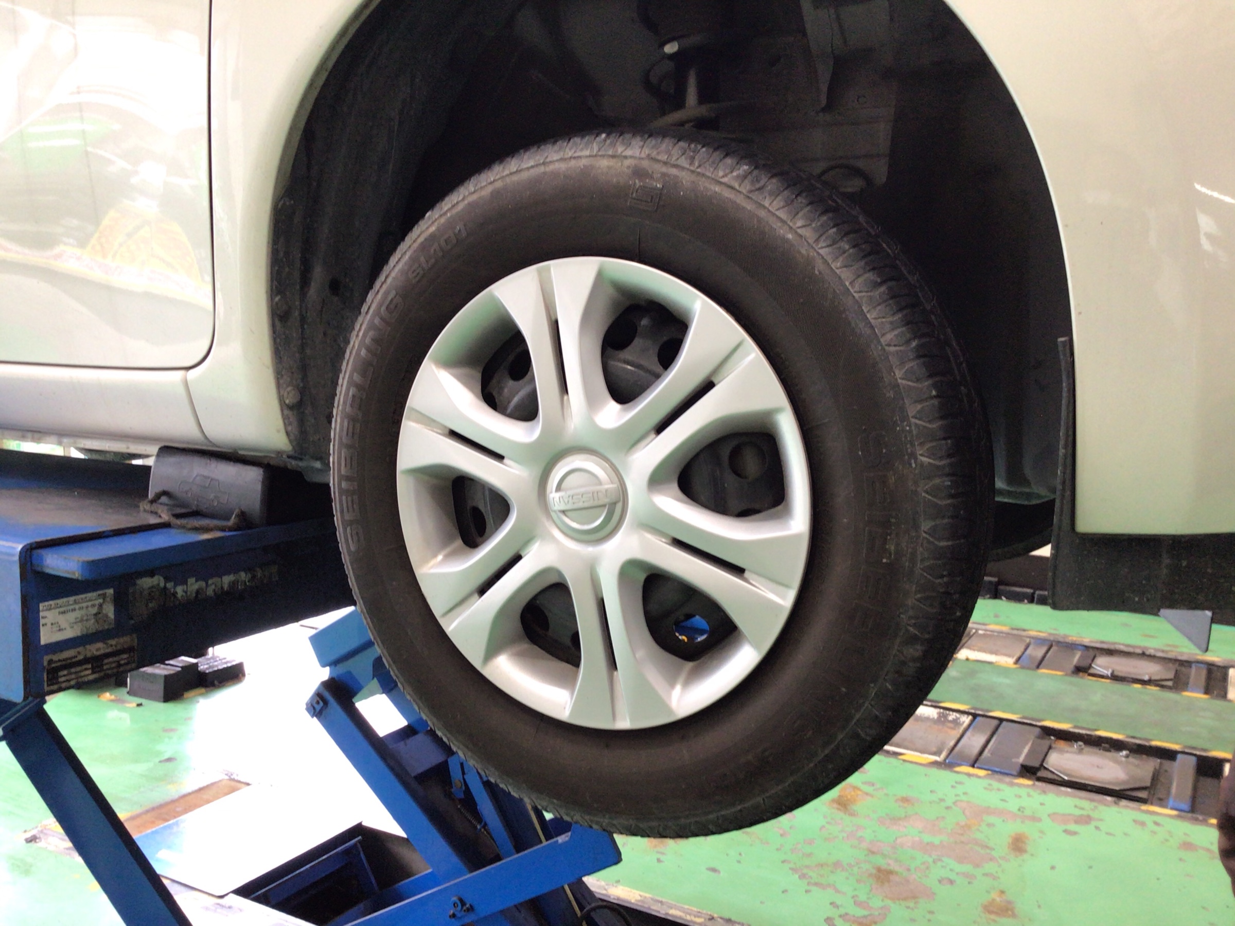NISSANのノートの2年目のタイヤの無料定期点検とローテーション作業