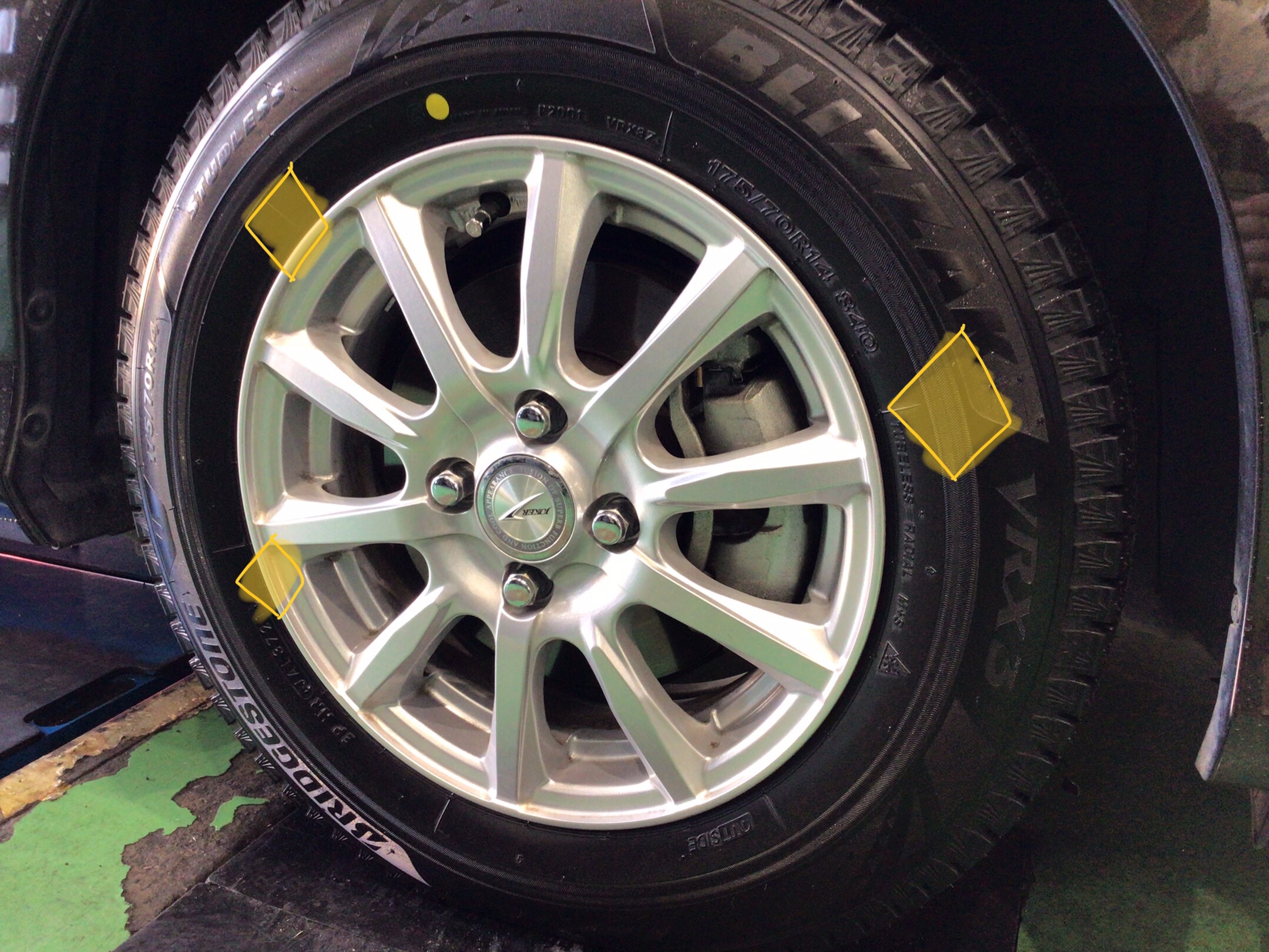 新品装着。アスファルトでの静粛性がかなり向上しているらしいですよ。先日ご来店された、20世紀からブリザックをご愛用くださっているお客様から頂いた感想です。100キロ点検でお待ちしております。グレイスのタイヤ交換はタイヤ館新座で!