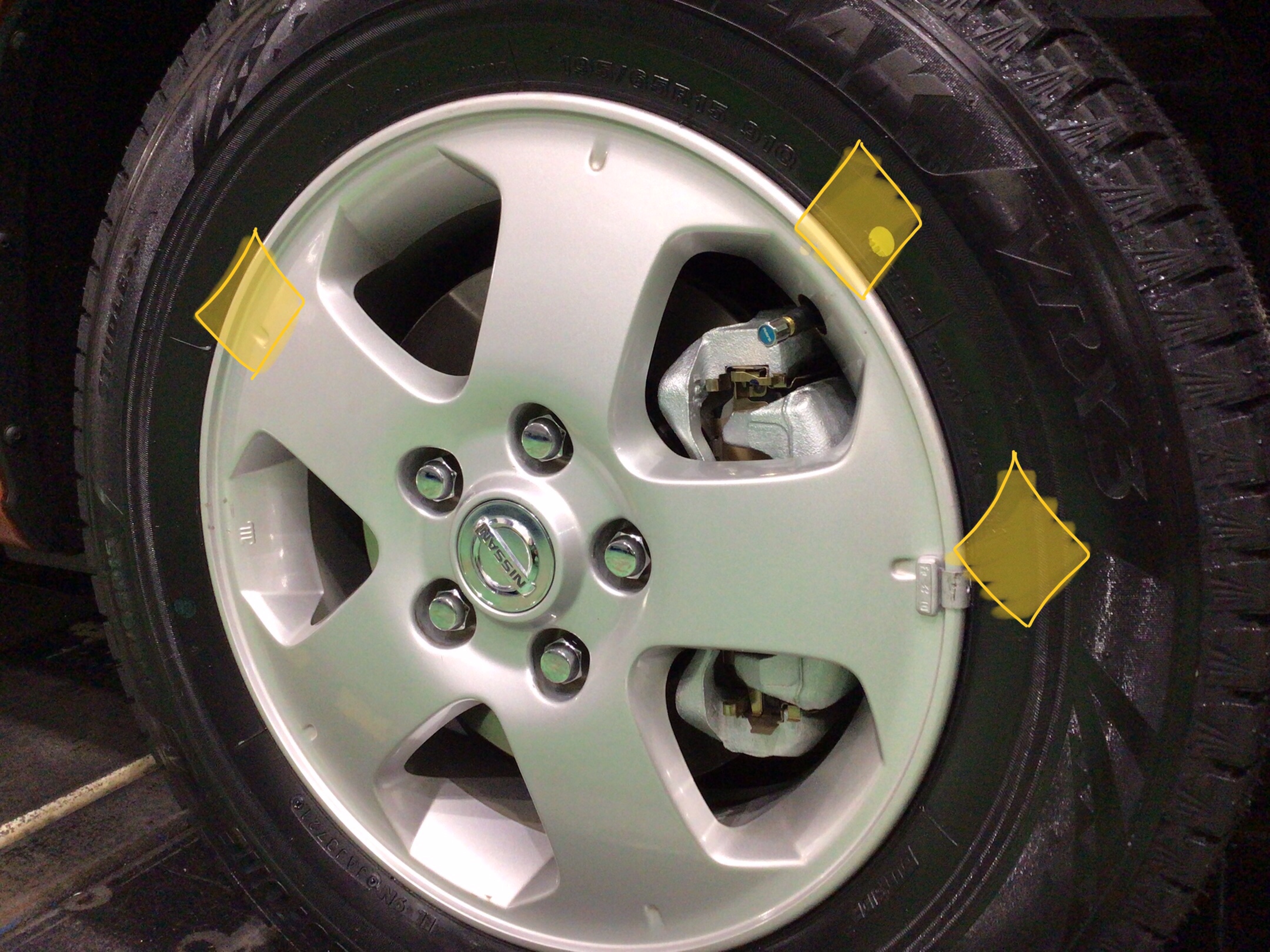 新品装着。両面打ち込みウェイトが渋いですね。本日はありがとうございました。100キロ点検でお待ちしております。セレナのタイヤ交換はタイヤ館新座で!