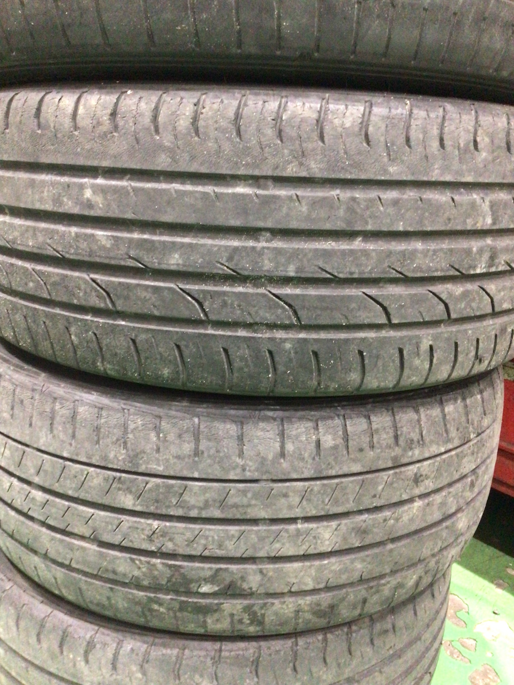 これまで装着されていたタイヤです。摩耗、ひび割れが見受けられます。交換時期ですね。