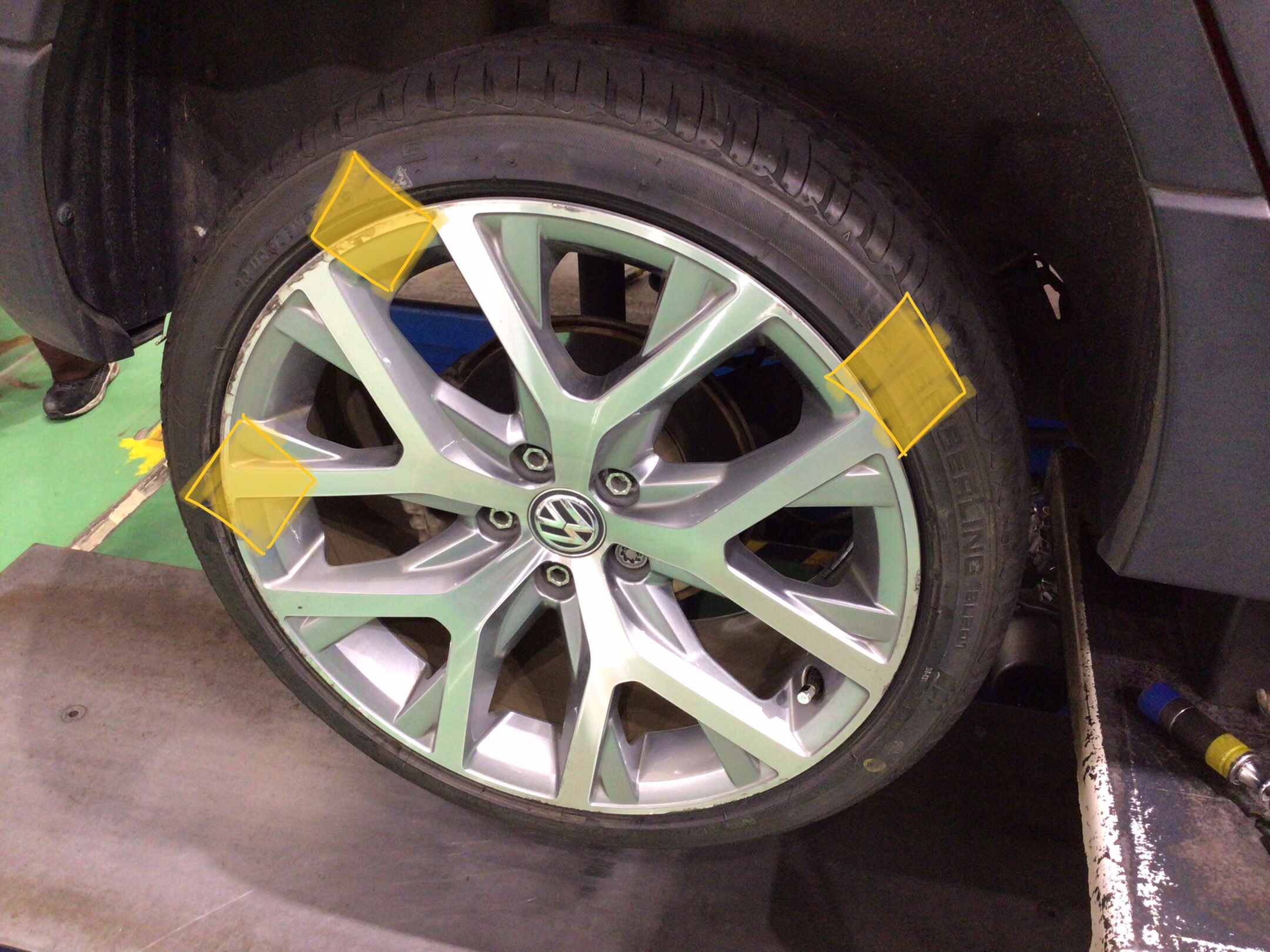 新品装着。本日はありがとうございました。100キロ点検でお待ちしております。クロスポロのタイヤ交換はタイヤ館新座で!