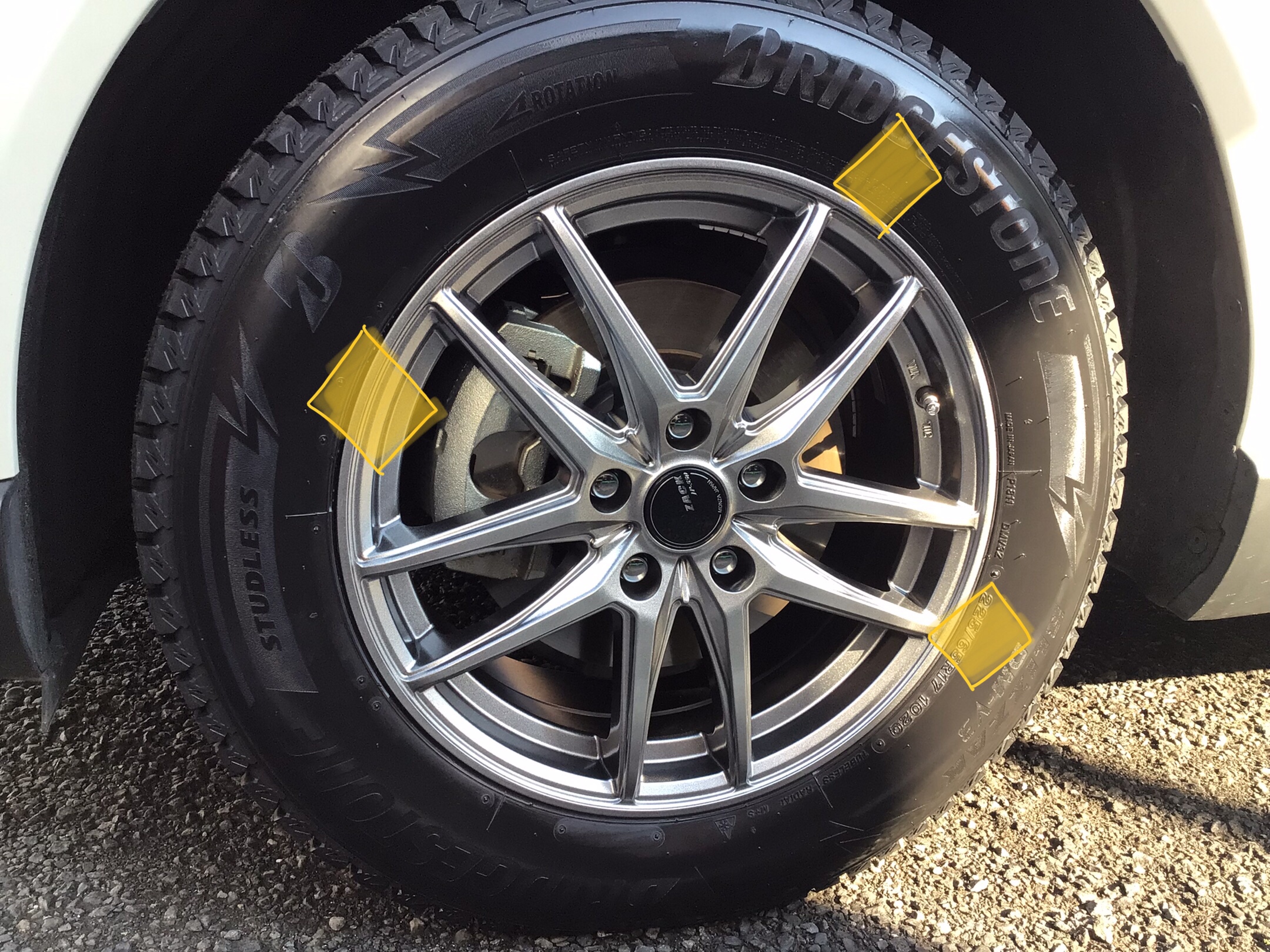 新品装着。分厚いサイドウォールがSUVに似合います。本日はありがとうございました。100キロ点検でお待ちしております。ハリアーのタイヤ交換はタイヤ館新座で!