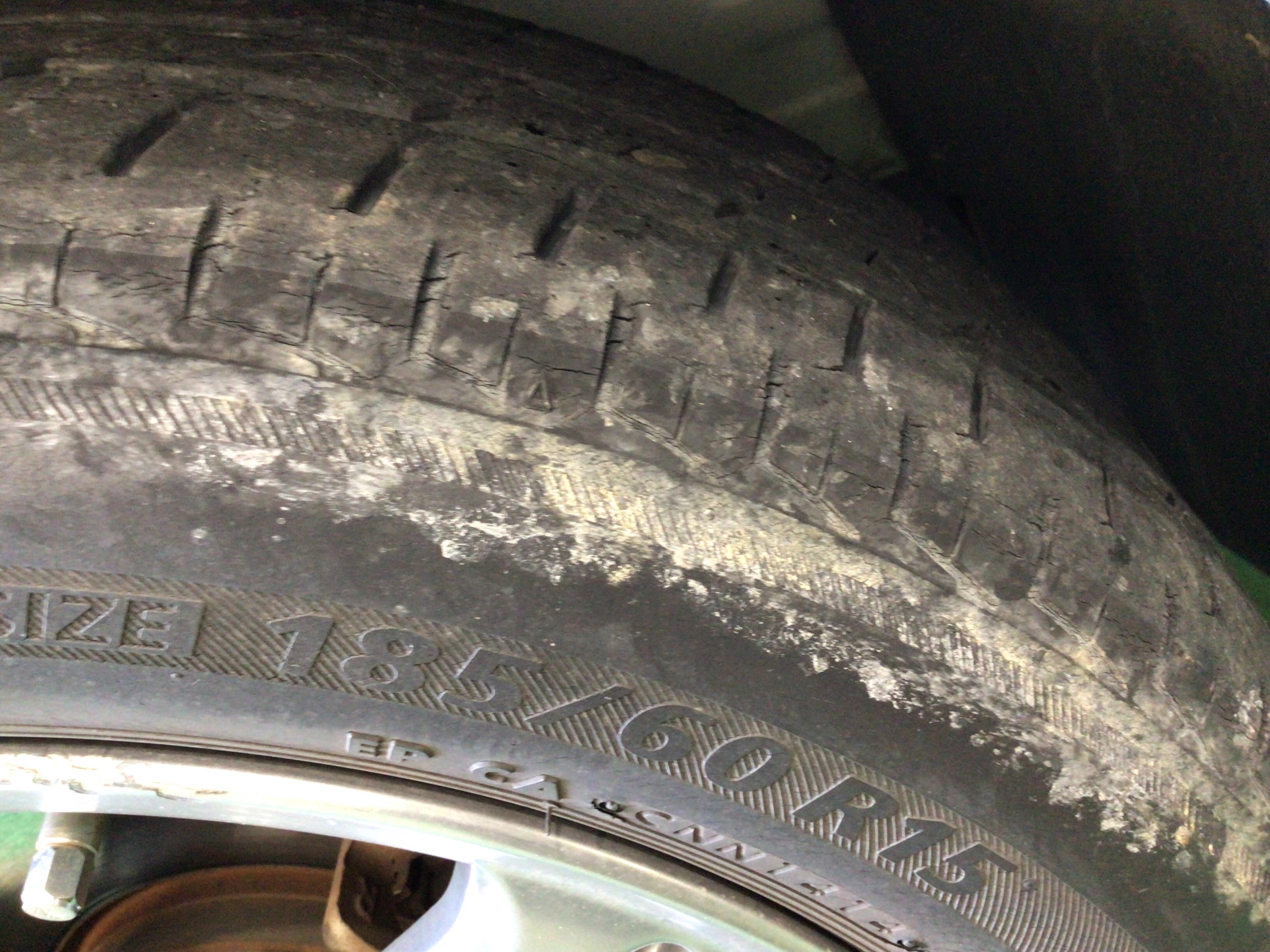 これまで装着されていたタイヤです。2014年製、さすがにひび割れが見受けられます。交換時期ですね。