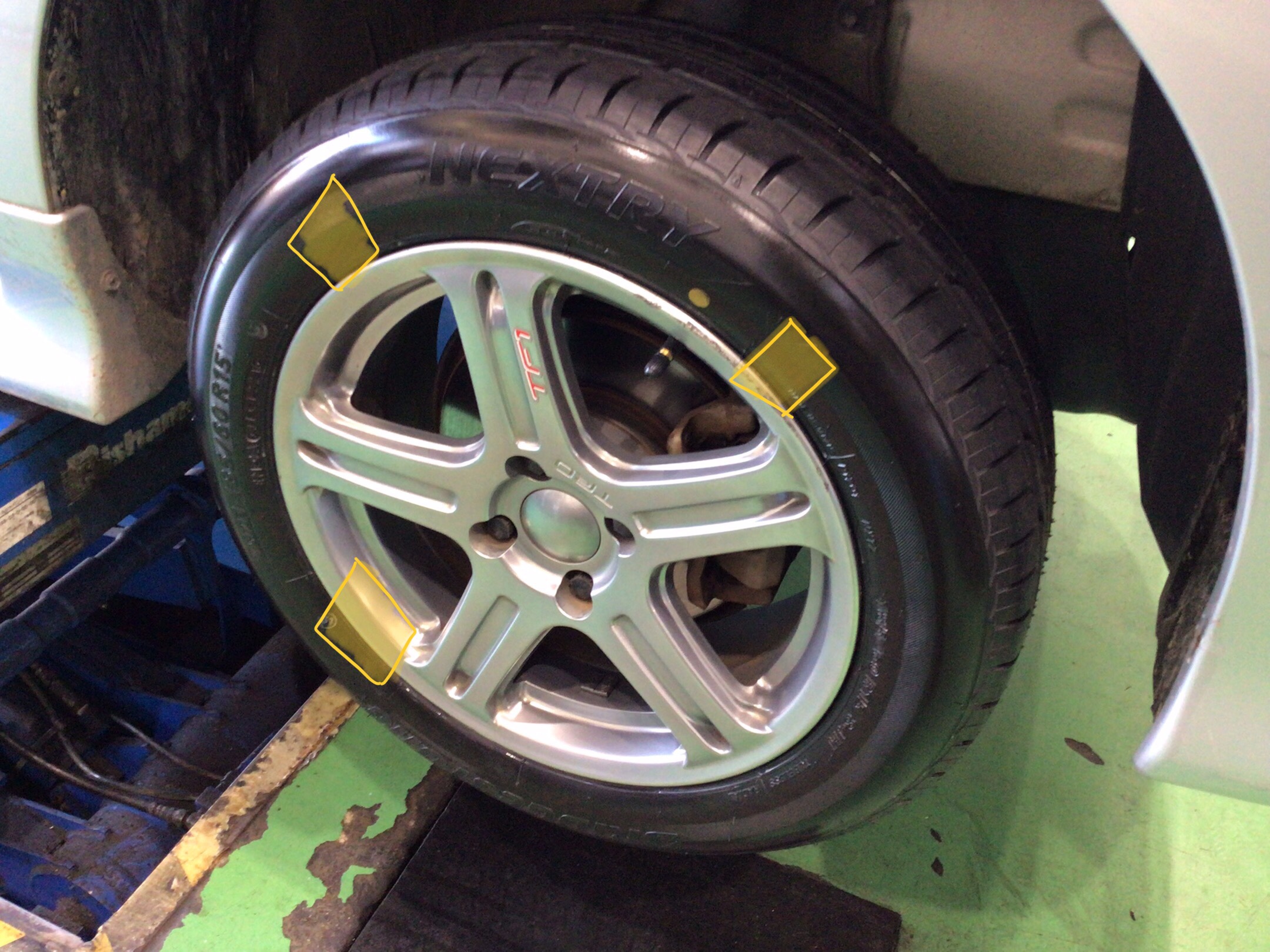 新品装着。本日はありがとうございました。100キロ点検でお待ちしております。シエンタのタイヤ交換はタイヤ館新座で!