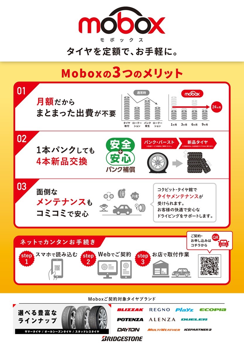 タイヤ館ではタイヤのサブスクリプションサービス、「モボックス」を始めました!