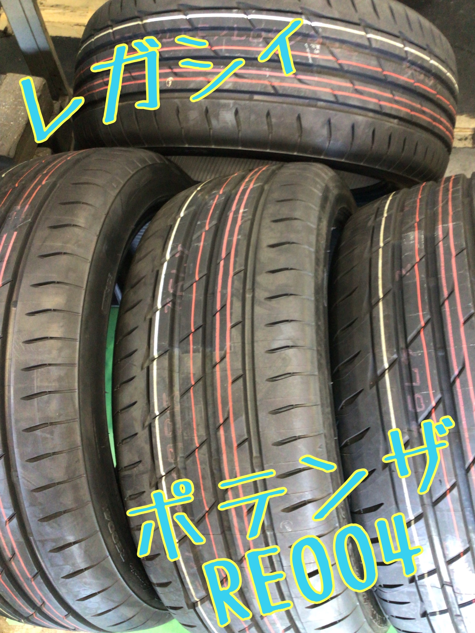 ポテンザ アドレナリンRE004です。RE-71RSほどガチのハイグリップではありません。コンフォート性能も意識したスポーツタイヤです。