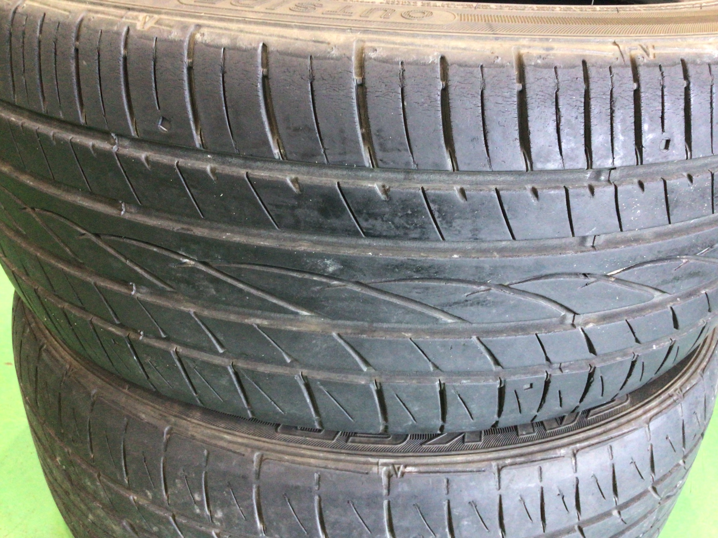 これまで装着されていたタイヤです。摩耗とひび割れが見受けられます。交換時期ですね。
