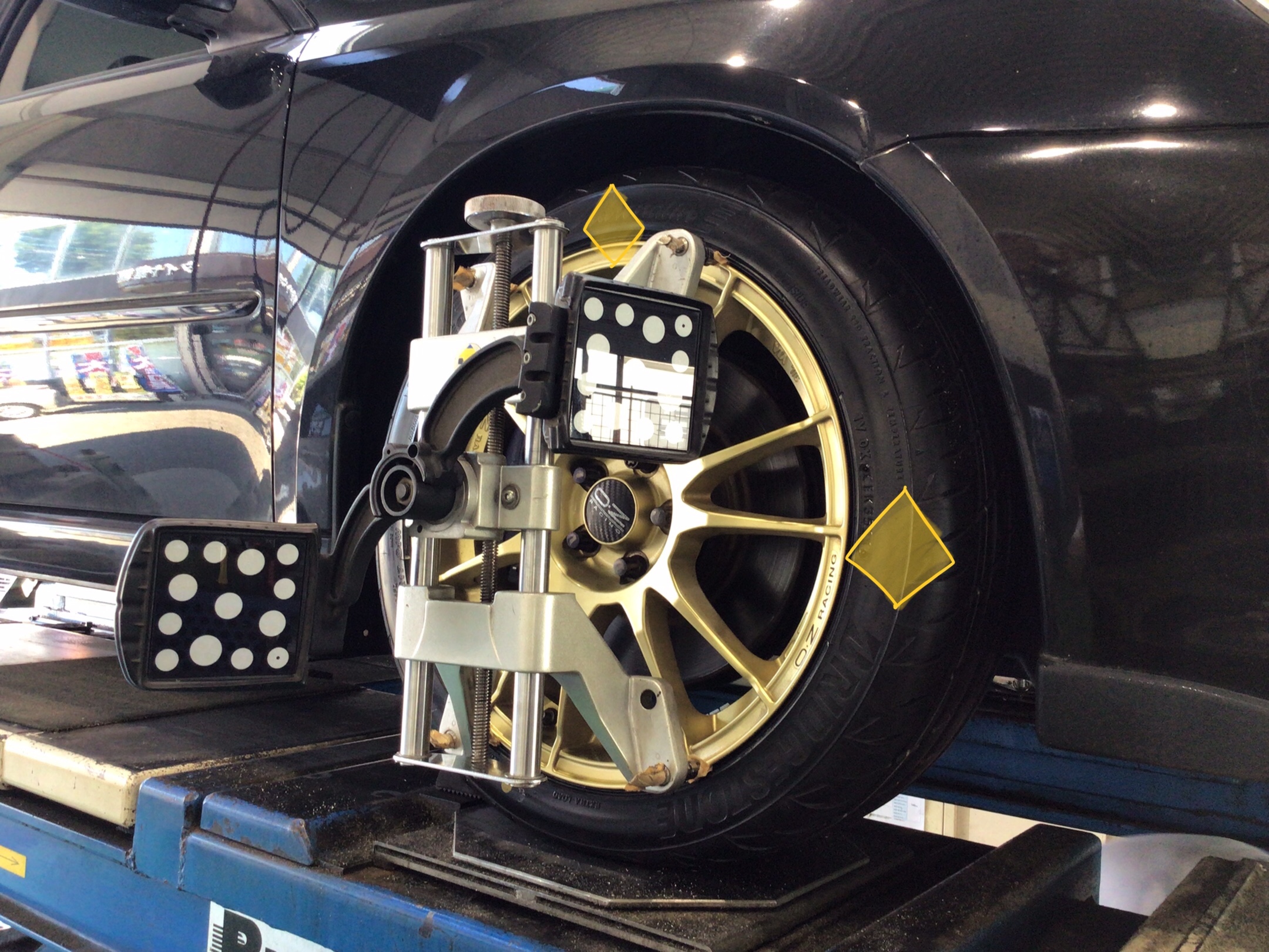 新品装着。アライメント測定/調整も同時に行いました。本日はありがとうございました。100キロ点検でお待ちしております。レガシィのタイヤ交換はタイヤ館新座で!