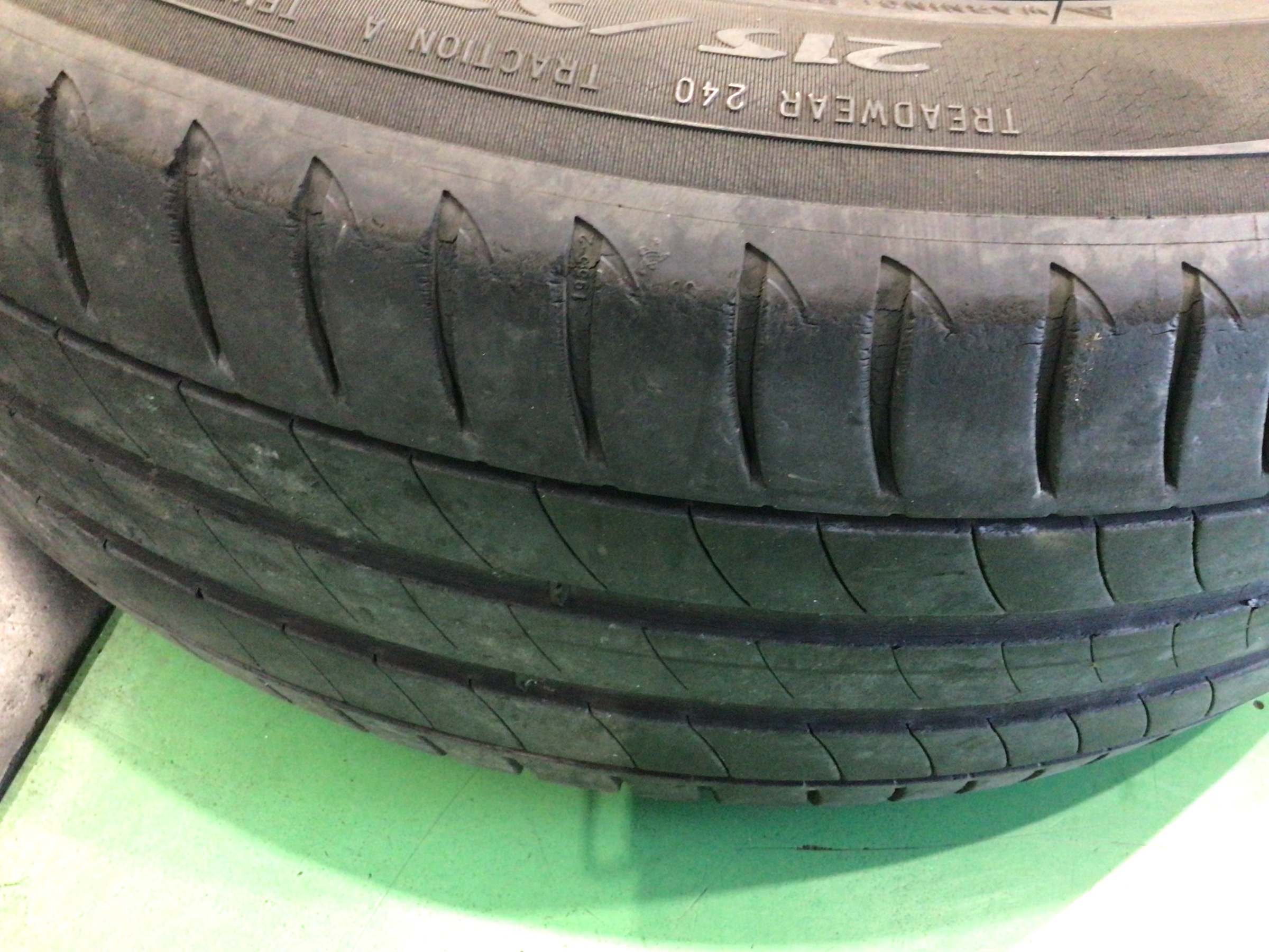 これまで装着されていたタイヤです。ひび割れと摩耗が見受けられます。交換時期ですね。