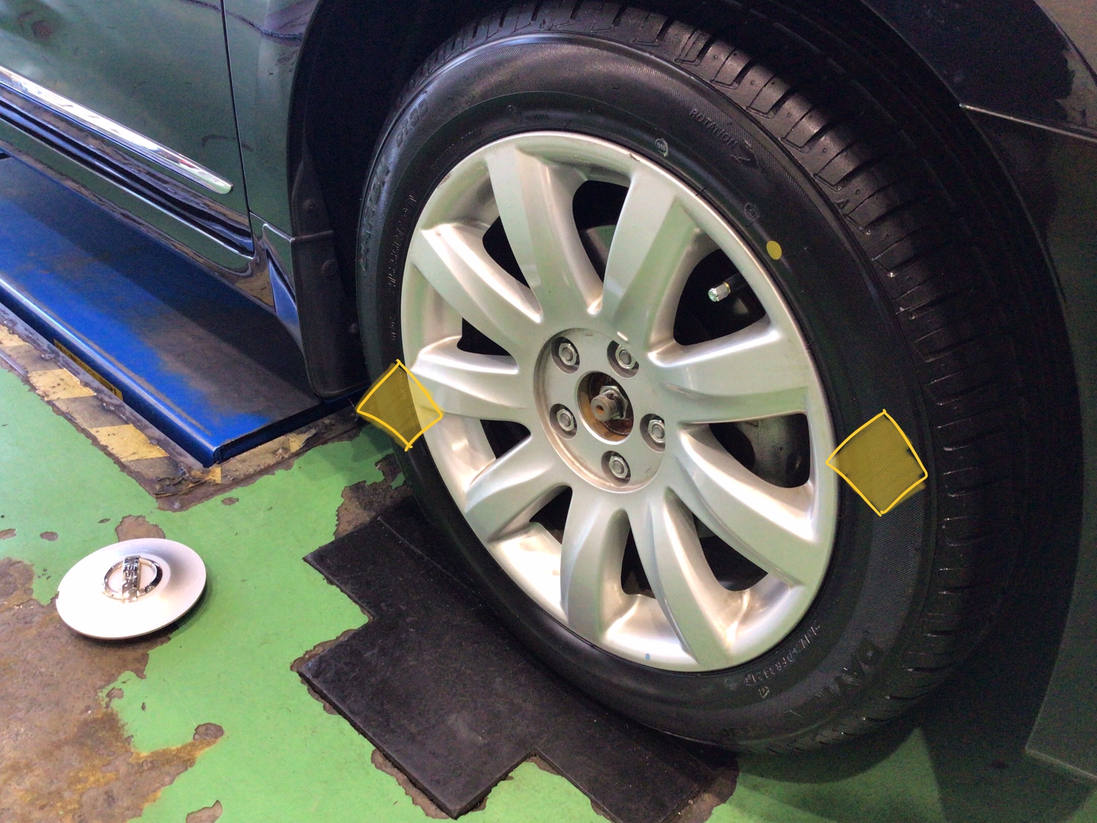 新品装着。本日はありがとうございました。100キロ点検でお待ちしております。ティアナのタイヤ交換はタイヤ館新座で!
