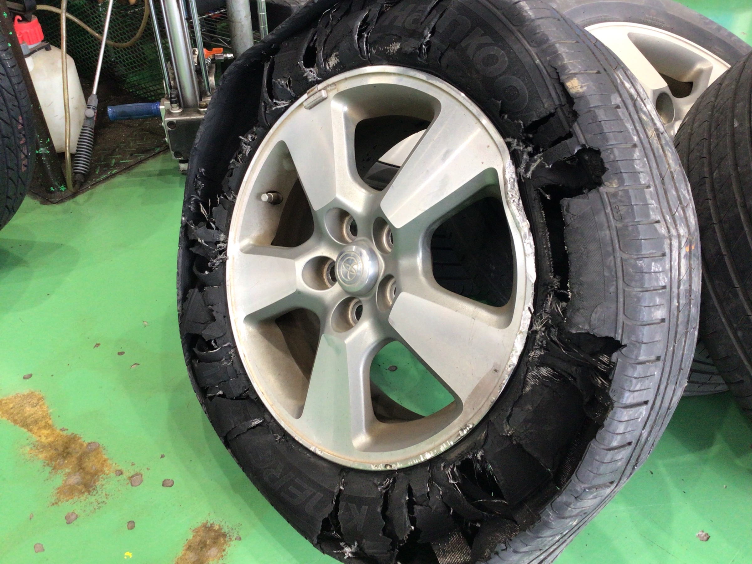 これまで装着されていたタイヤです。無事に店舗までたどり着いてもらってよかったです。