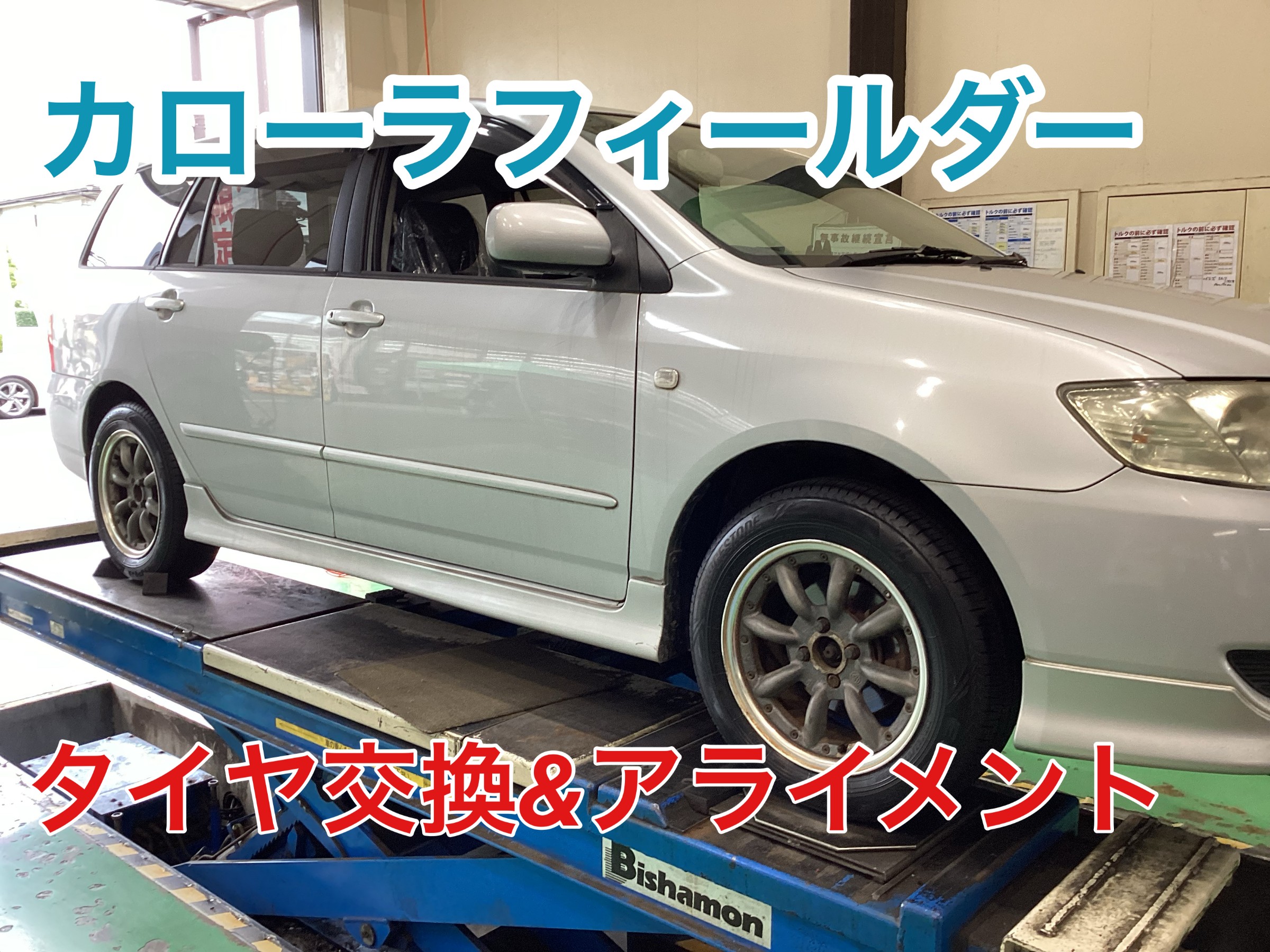 カローラフィールダータイヤ交換&アライメント