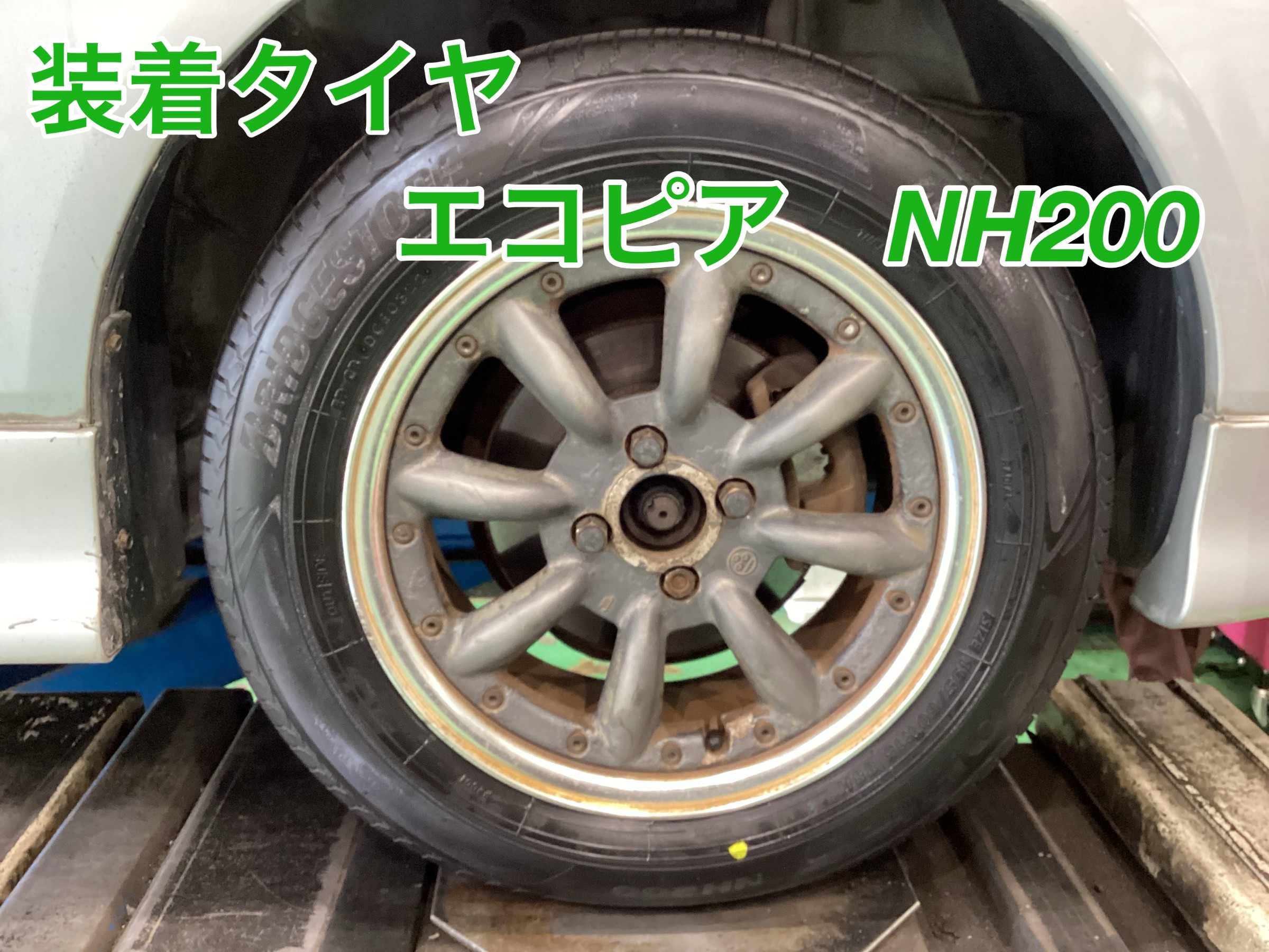 今回装着したタイヤはエコピアNH200、タイヤサイズは195/60R15です。