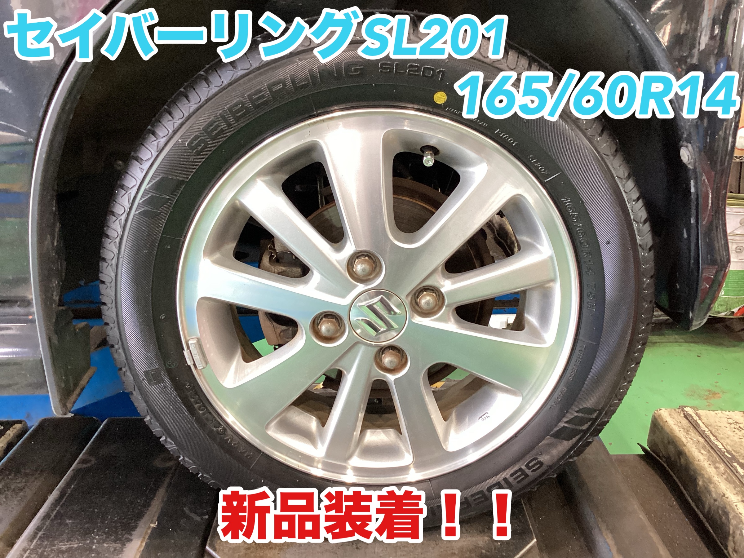 今回装着したタイヤはセイバーリング SL201、タイヤサイズは165/60R14です。