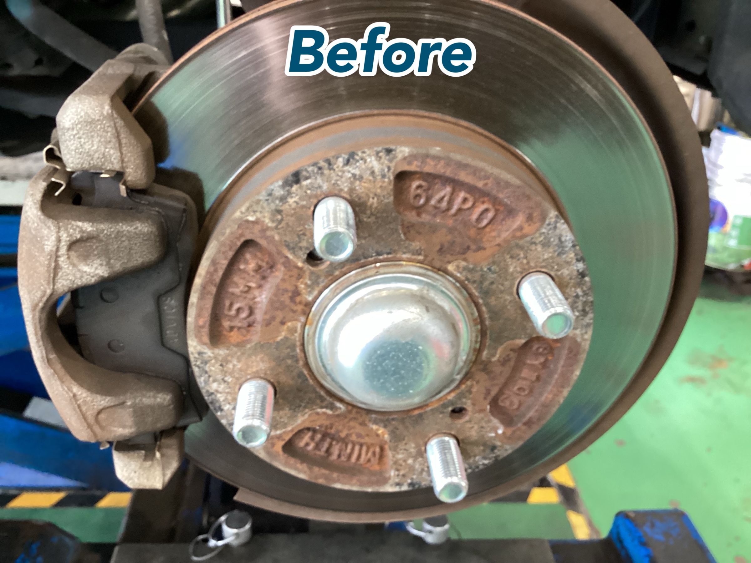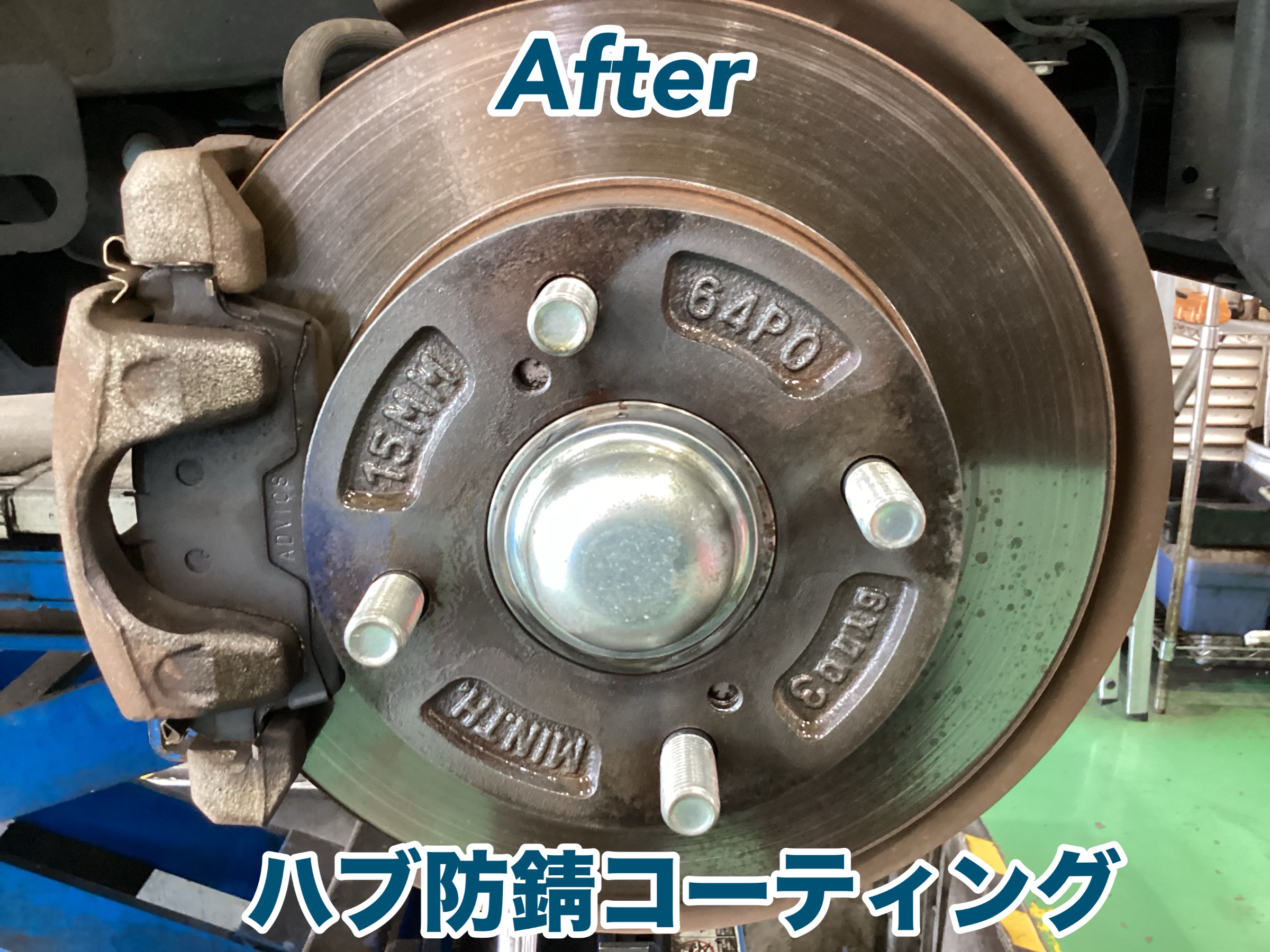 タイヤ交換作業とあわせてハブ防錆コート作業を施工させていただきました。