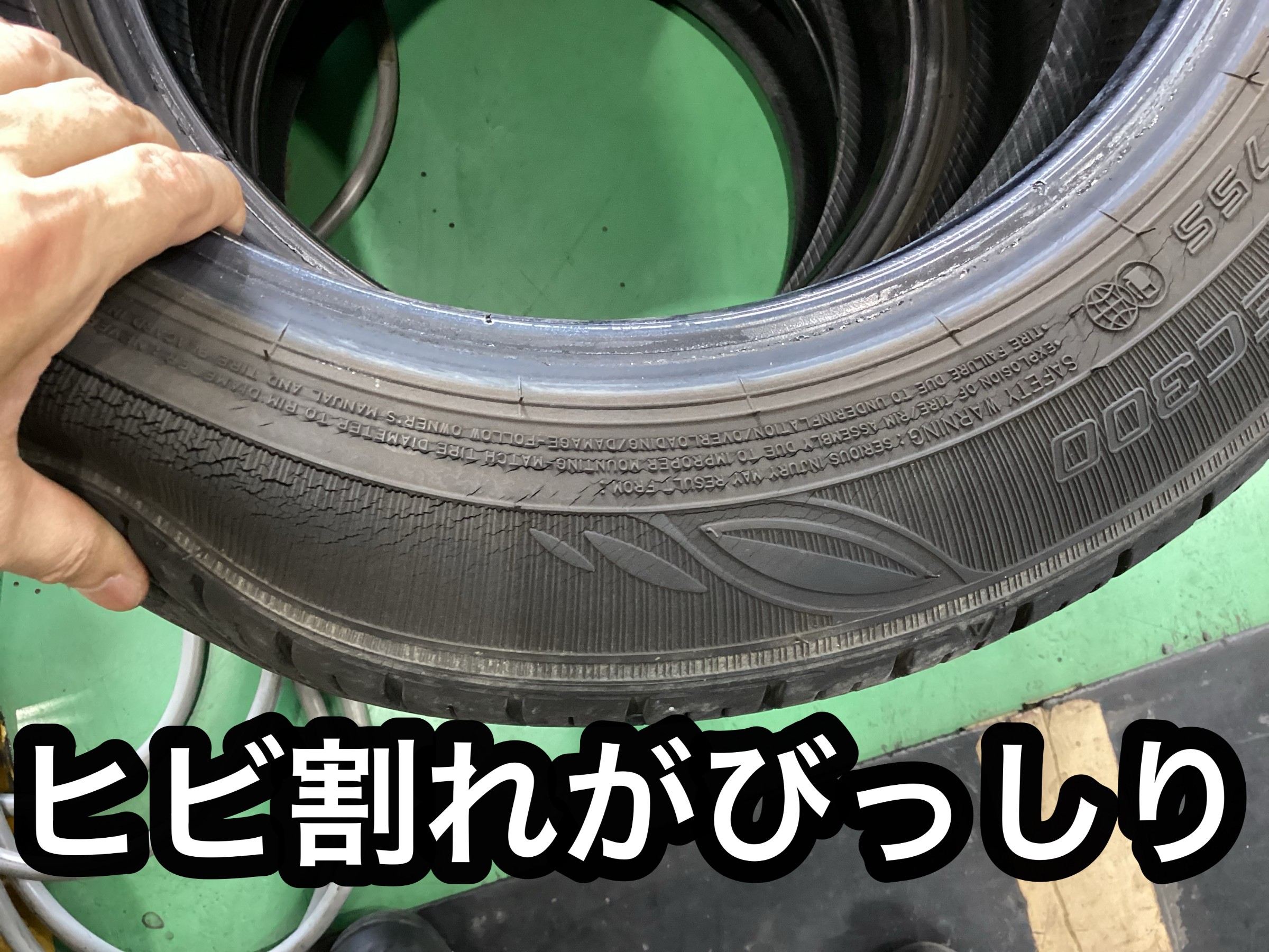 こちらは交換する前のタイヤですがひび割れがびっしり・・・