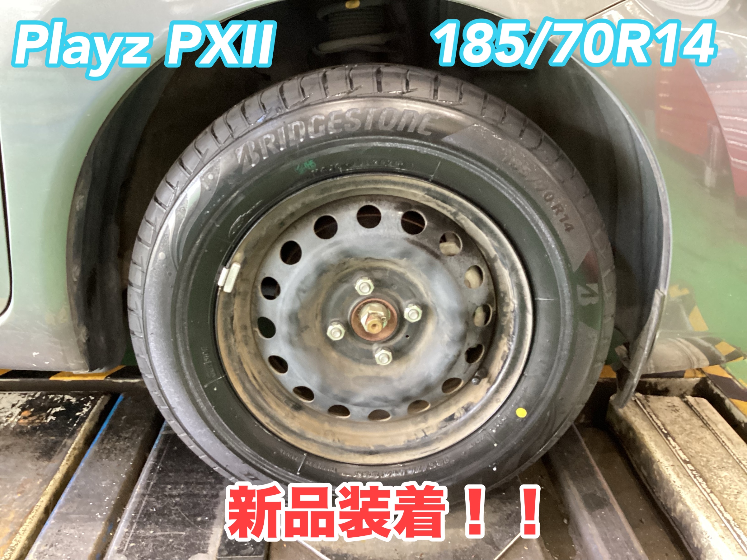今回装着したタイヤはPlayz PXⅡ、タイヤサイズは185/70R14です。