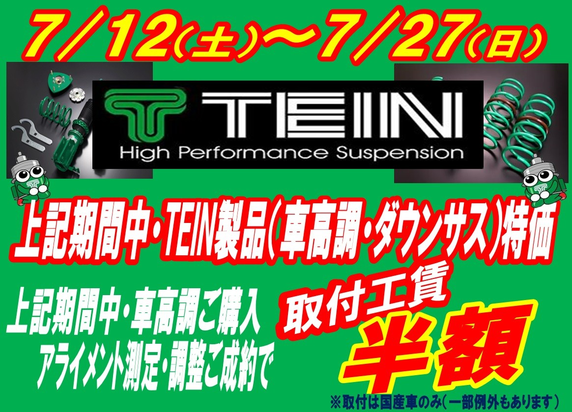 先日よりHPのご案内させていただいております足回り(TEIN)キャンペーン開催しております♪