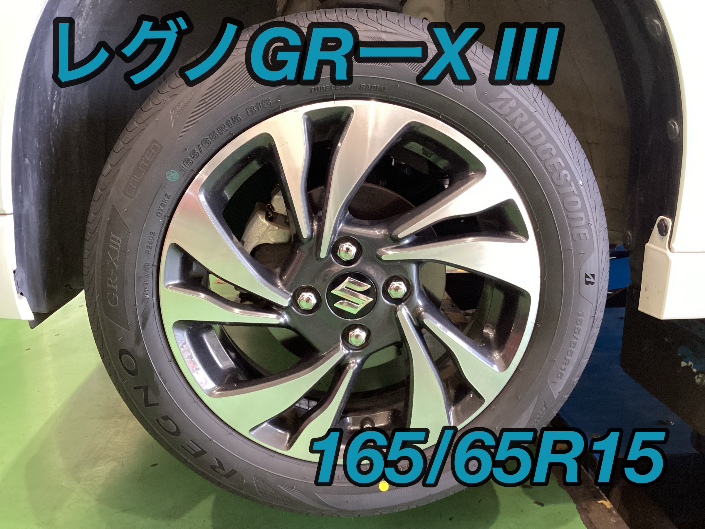 今回装着しましたタイヤはレグノ GR-XⅢ、タイヤサイズは165/65R15です。