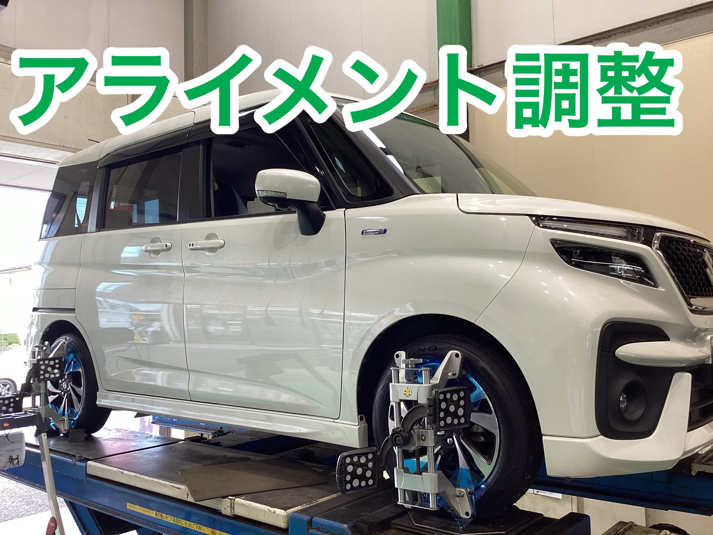 本日は、スズキ ソリオバンディットのお車のタイヤ交換とアライメント作業のご紹介です!