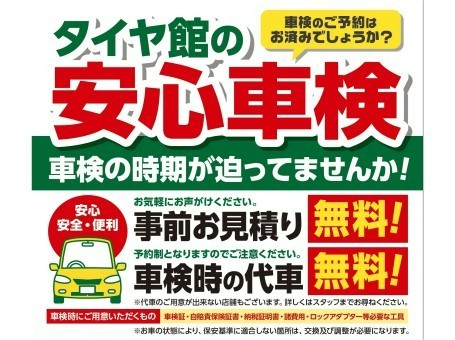 タイヤ館は、タイヤ・カーメンテナンス・点検/車検まで、幅広く対応!