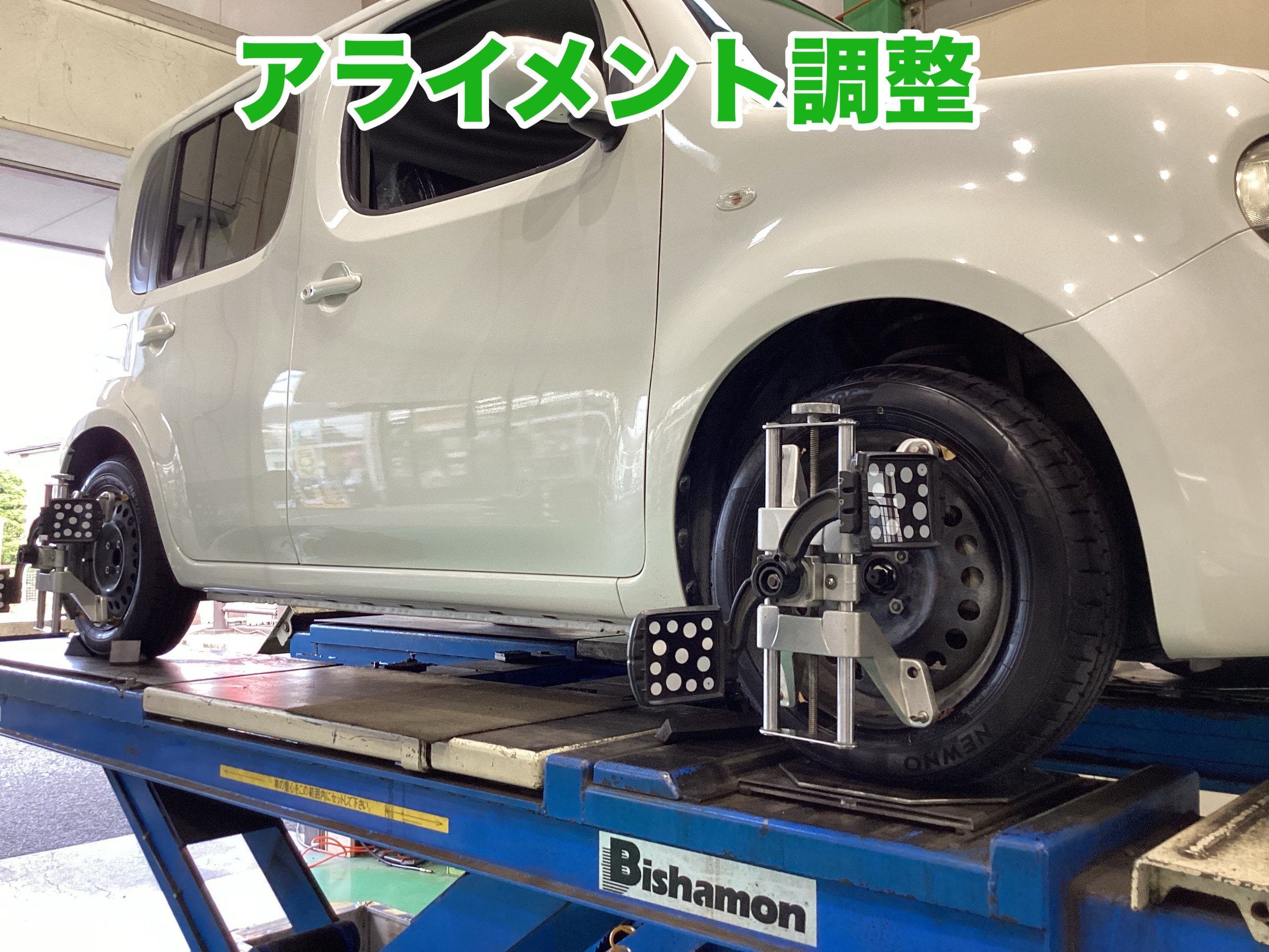 本日は、ニッサン キューブのタイヤ交換、アライメント、バッテリー交換のご紹介です!