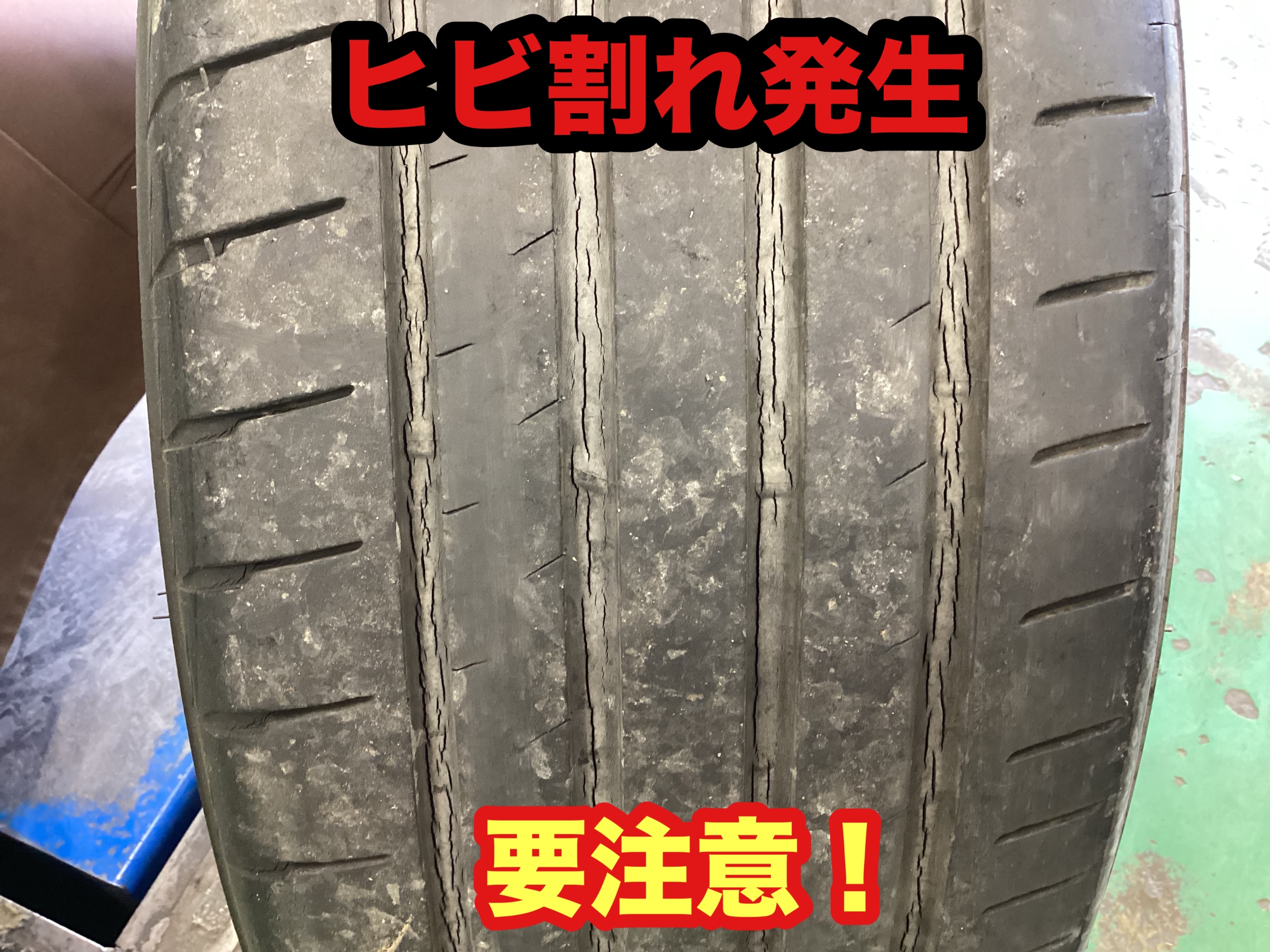 タイヤはご存知のとおり、ほぼゴムで出来ていますので、劣化してくるとヒビが入ってくる事があります。