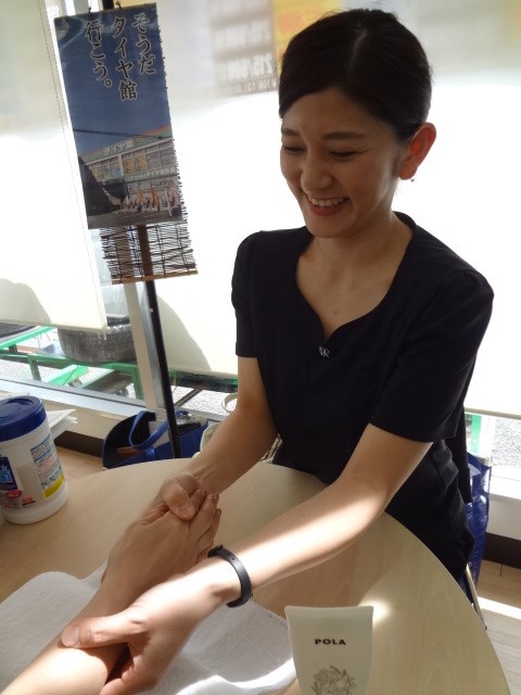 女性のお客様是非履き替えをお待ちいただいている間にハンドマッサージ体感してみてはいかがですか??