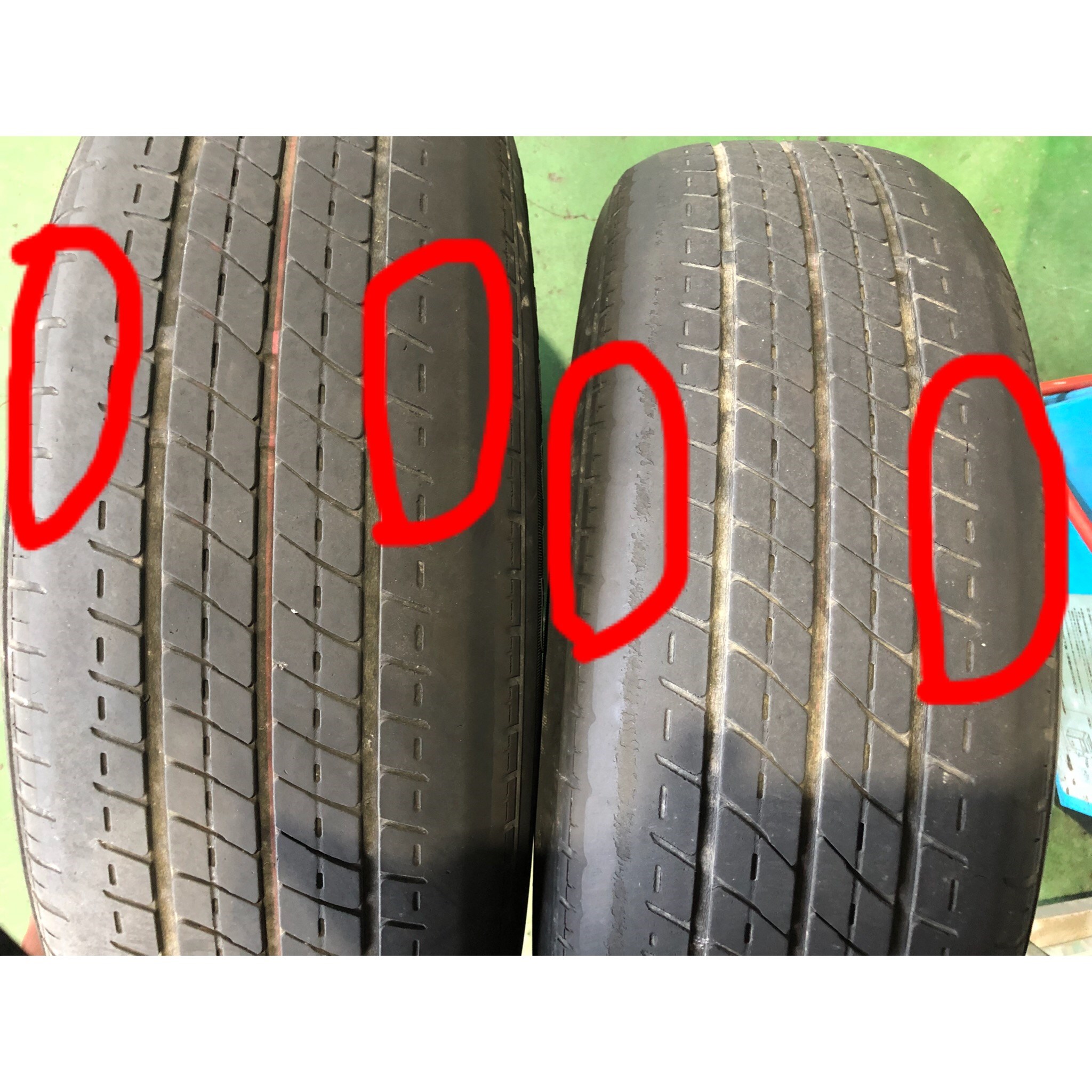 さて、今日は空気圧不足だとタイヤがこんな風に溝がなくなりますよ。