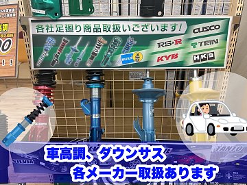 愛車のドレスアップお任せ下さい!車高調、ダウンサスなど様々なメーカーの取り扱いあり!です