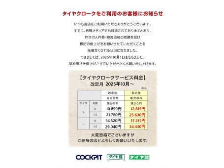 空気圧の点検、空気の補充は、コクピット・タイヤ館におまかせ!