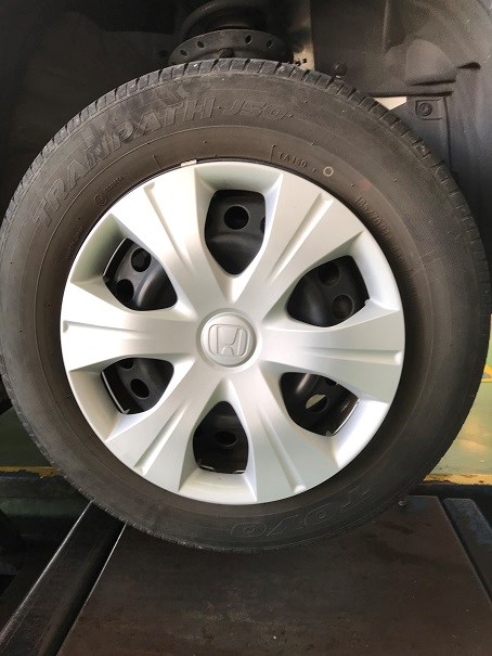 もともとはこちらの14インチ鉄ホイールにホイールキャップでした。
