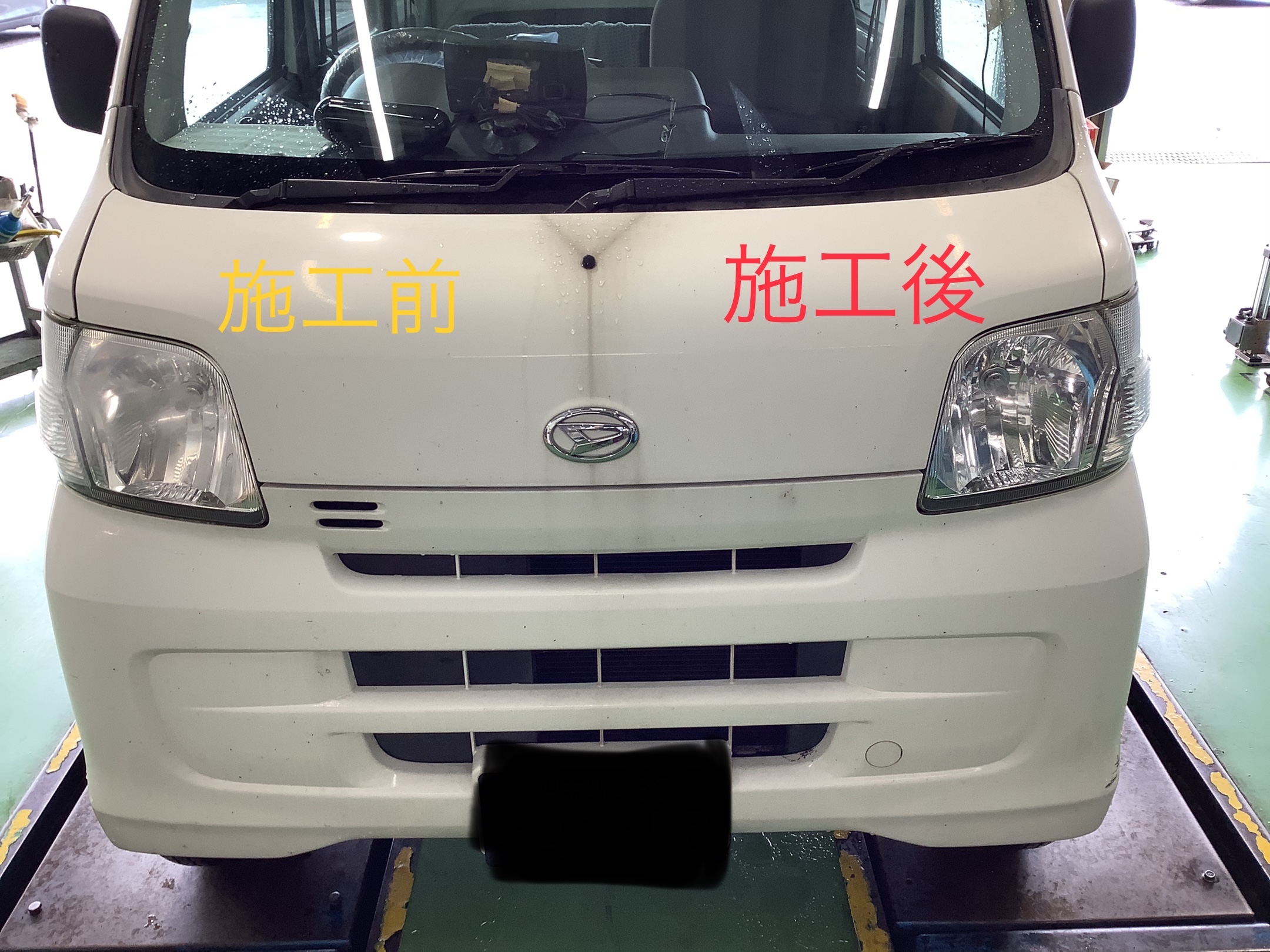 今回はダイハツ ハイゼットのヘッドライトクリーニングです。
