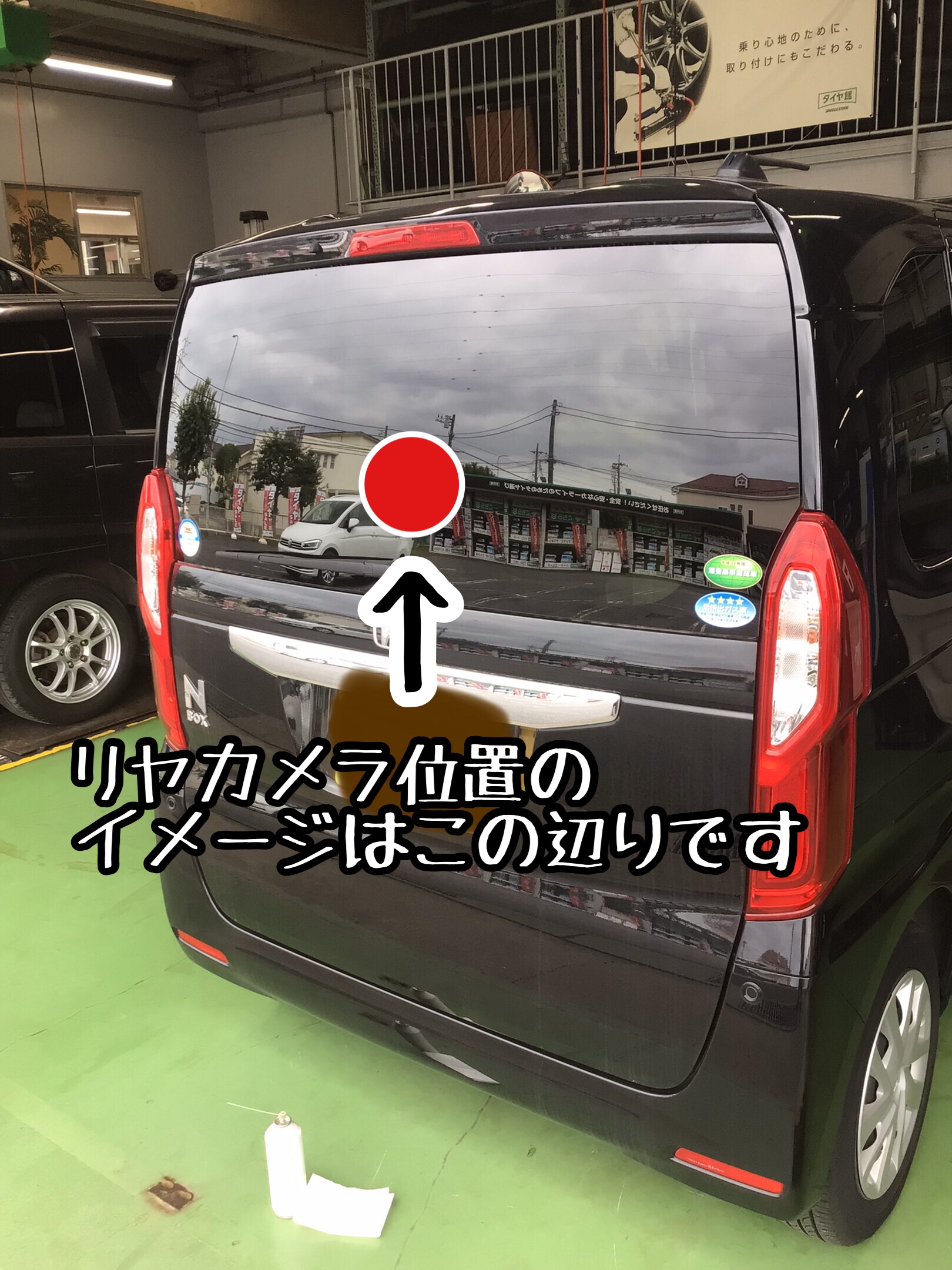 リヤワイパーの可動範囲内に取付ける為