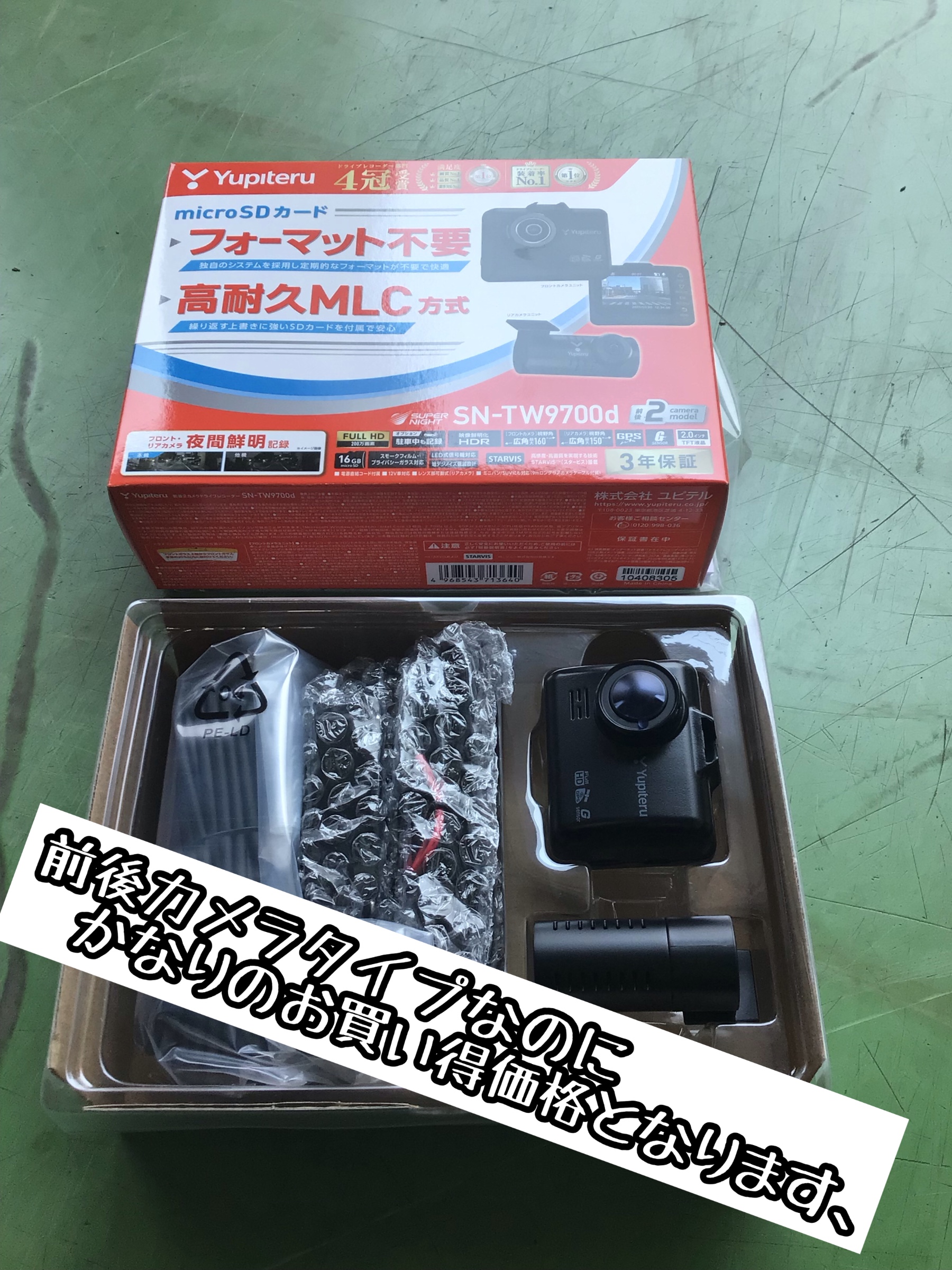 今回取付もコスパで有名なユピテルの前後カメラです!