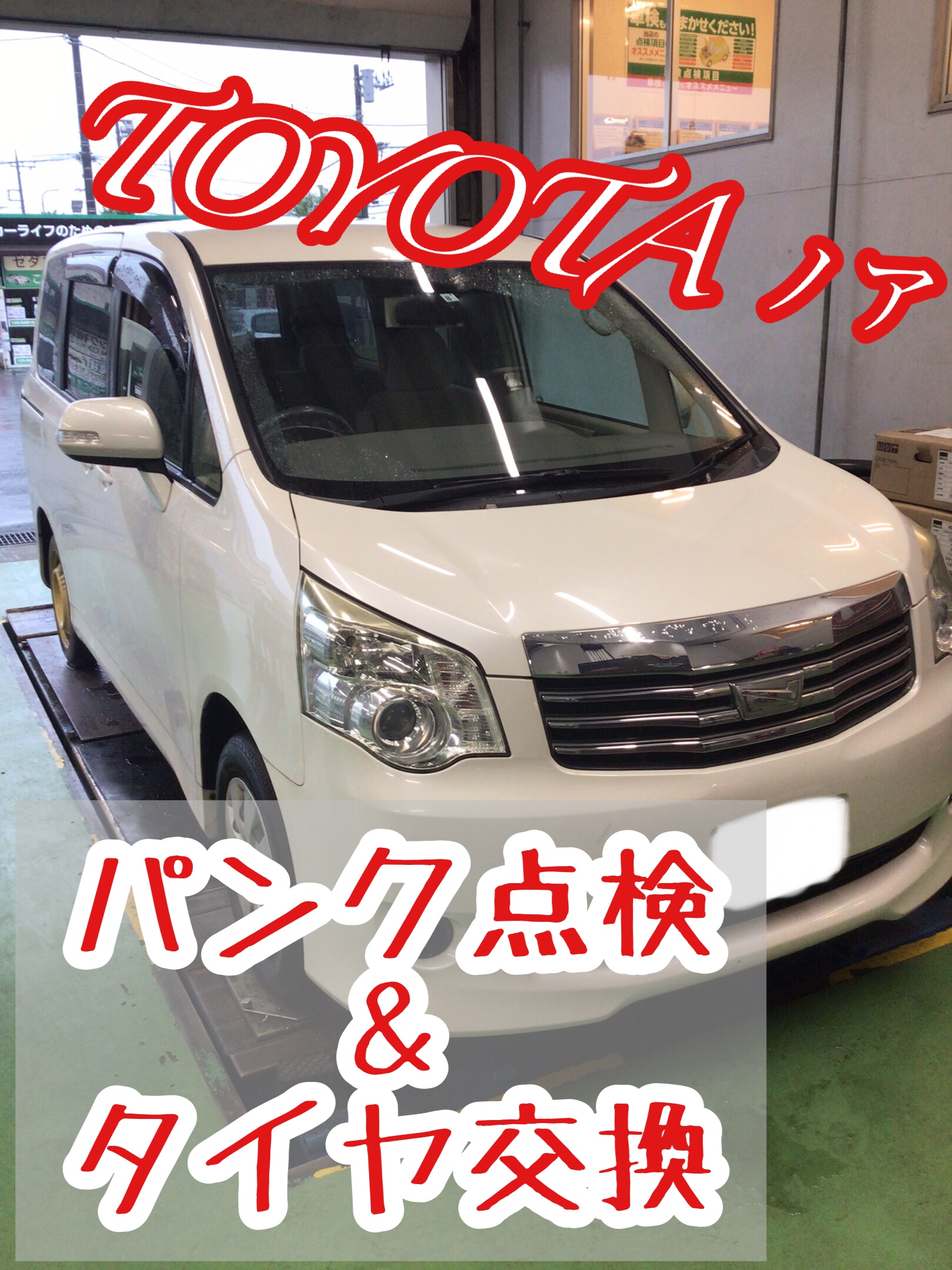 トヨタ ノアのパンク点検、タイヤ交換の紹介