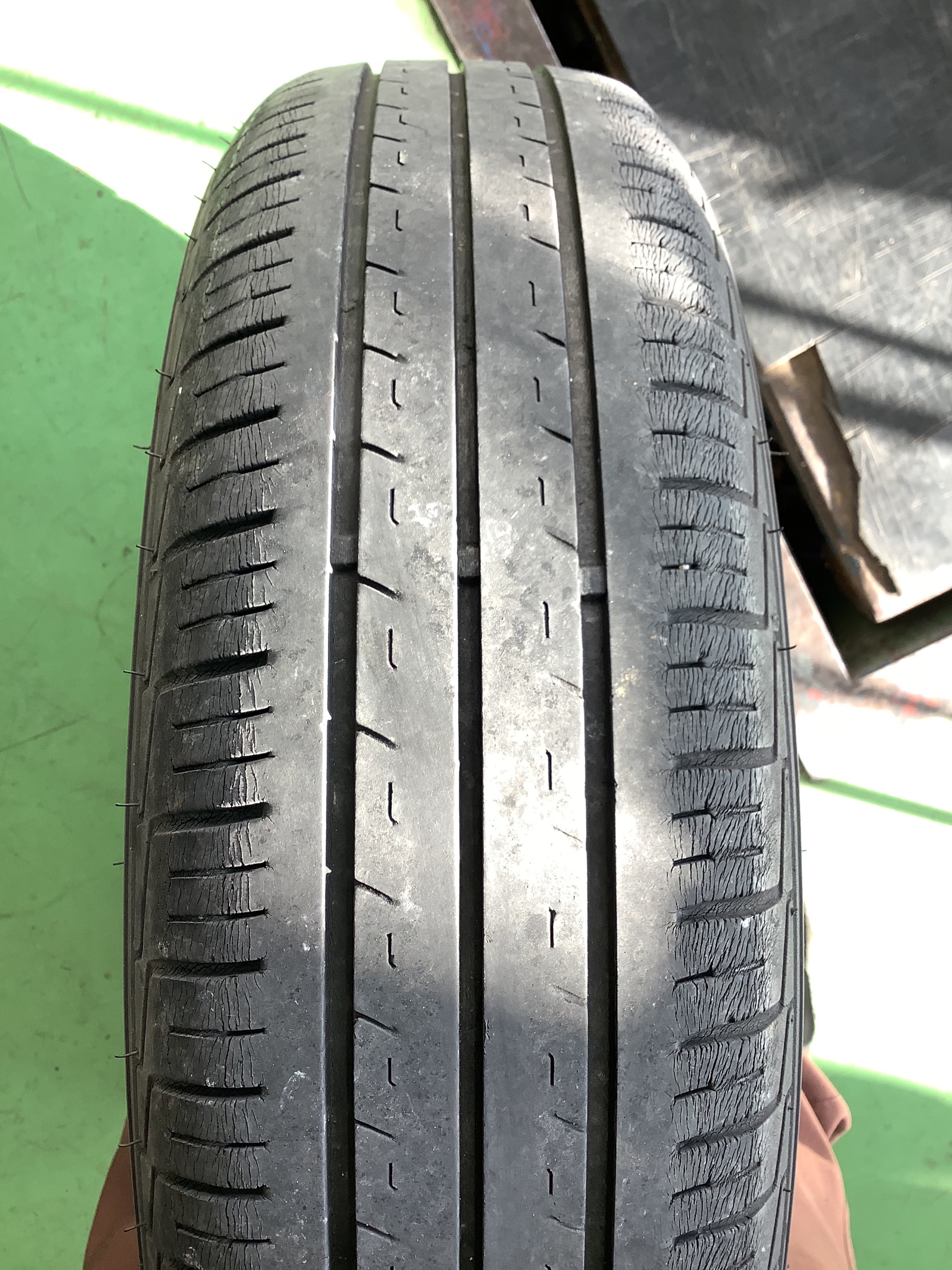 経年劣化でタイヤの両端にヒビが入ってます