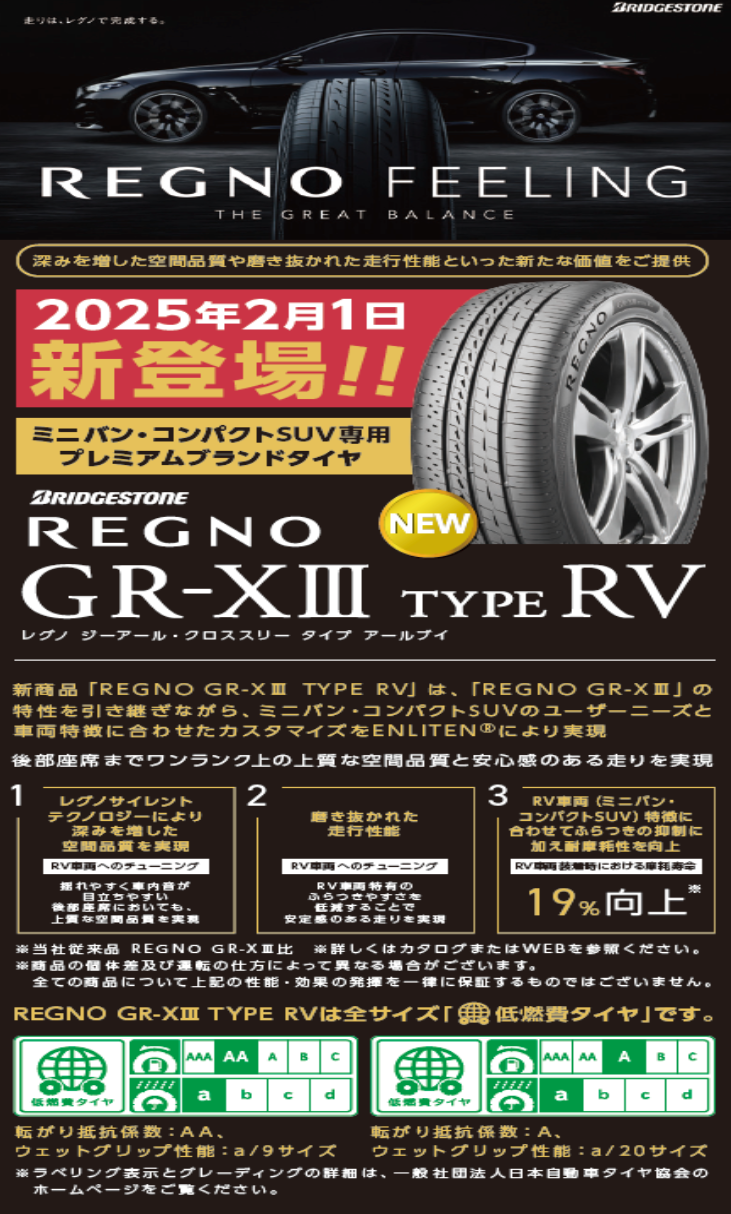 今回は新商品 新商品レグノ GRXⅢ!※ブリヂストン ホームページ参照