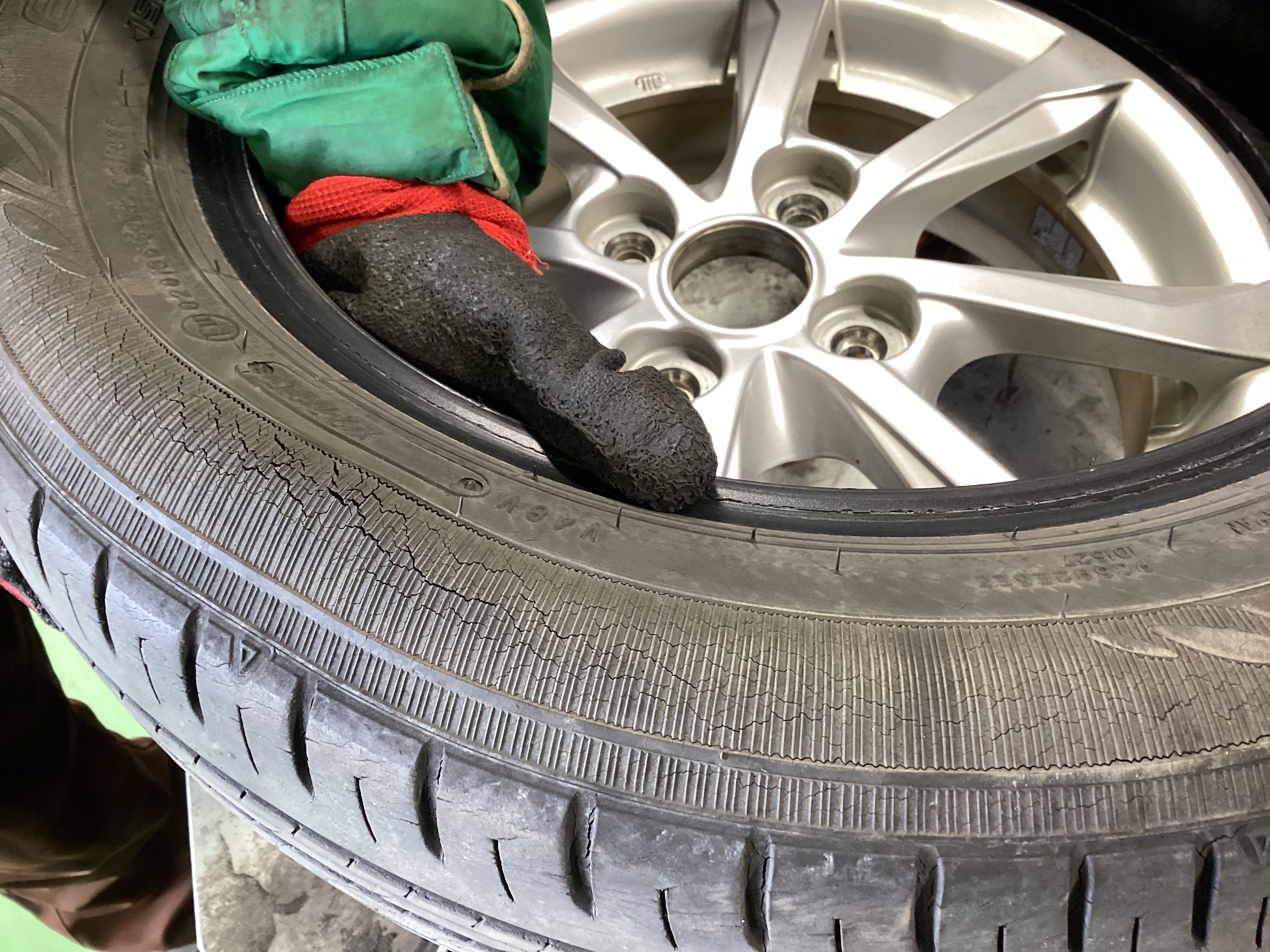 スタンドさんで、タイヤのひび割れを指摘を受け、当店にご来店いただきました。