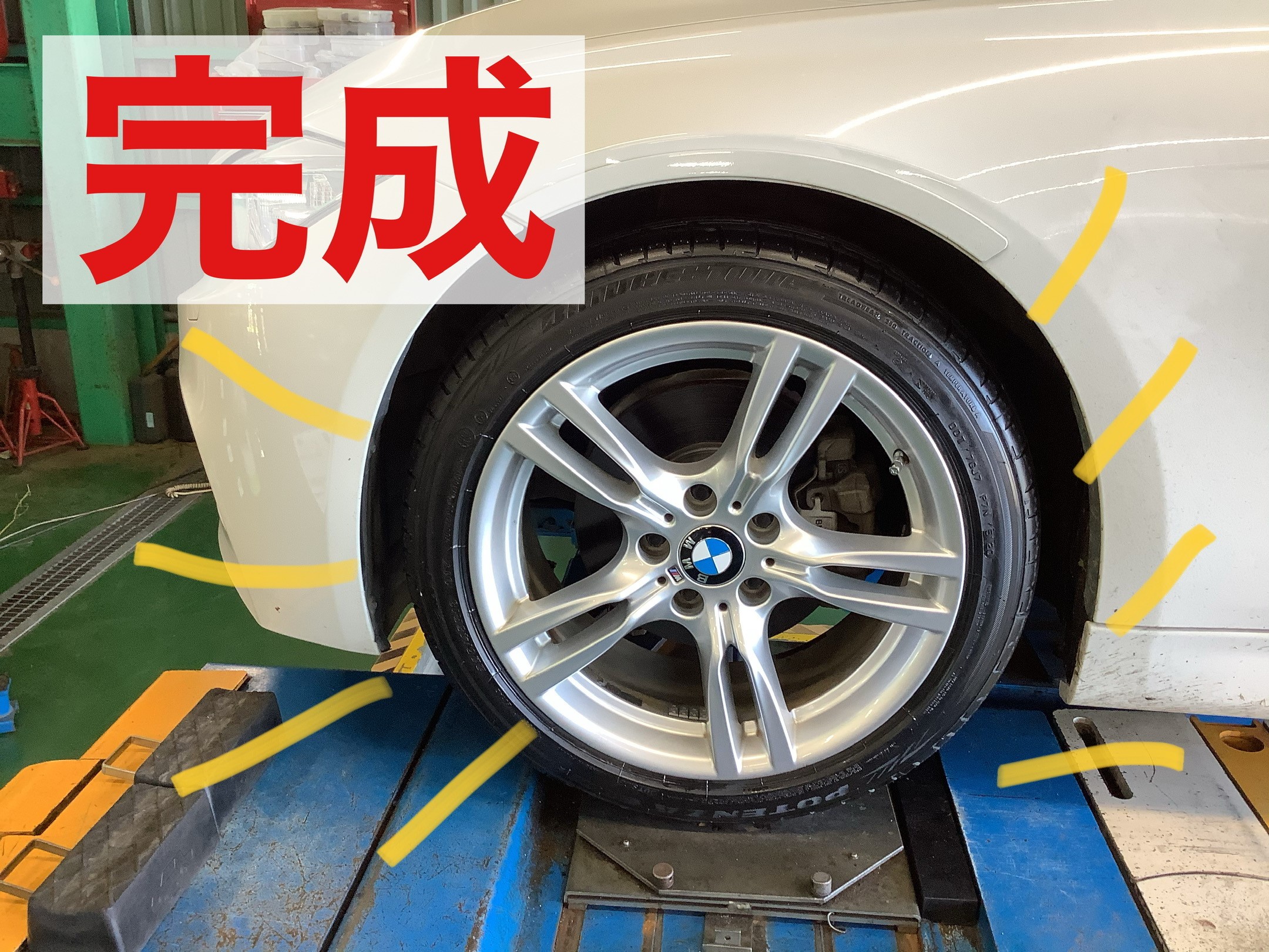 回ご紹介するのはBWM3シリーズのタイヤ交換+アライメントです。